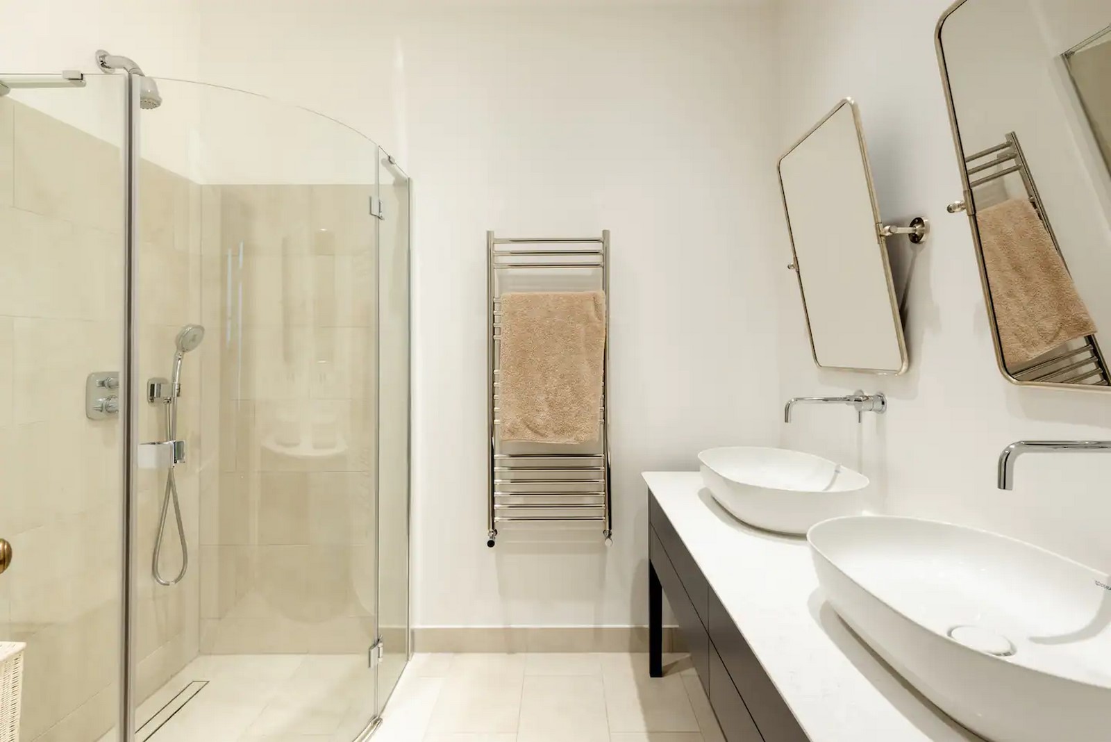 Bedroom 2: UK-King size bed, Ensuite bathroom with stand-alone rain shower, Dual vanity, Desk