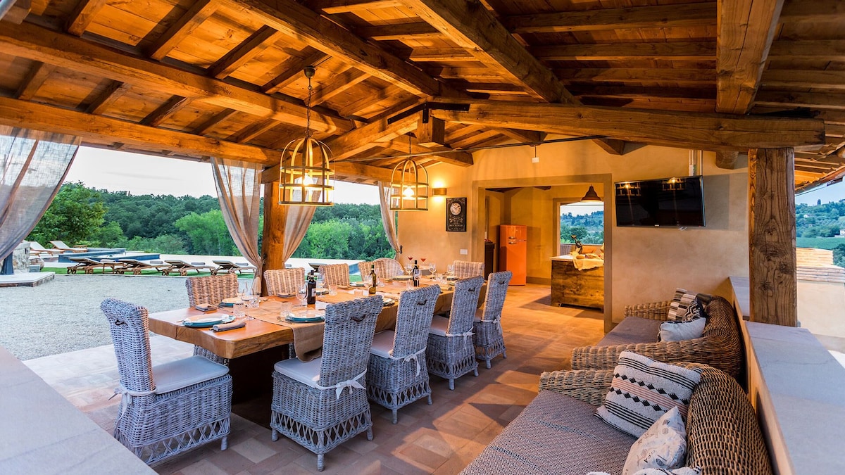 Next to the swimming pool is an outbuilding of about 100 sqm with large panoramic terrace, equipped outdoor kitchen, bbq, bar area, relaxation area and a large table to enjoy outdoor dining.