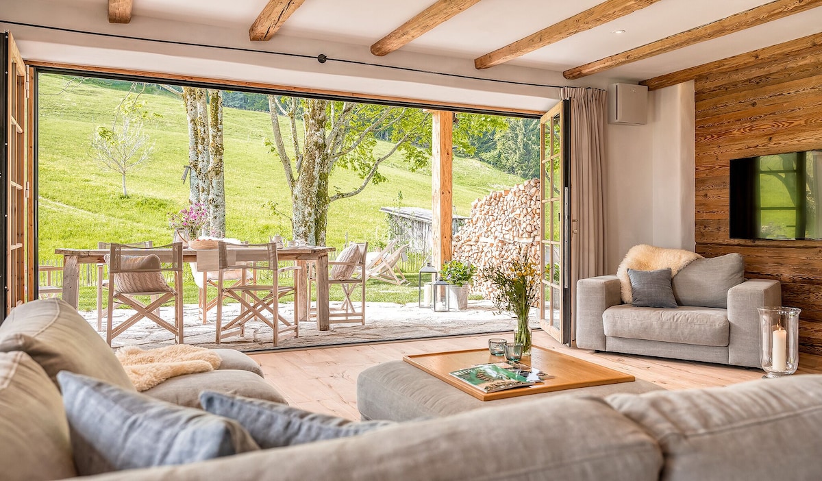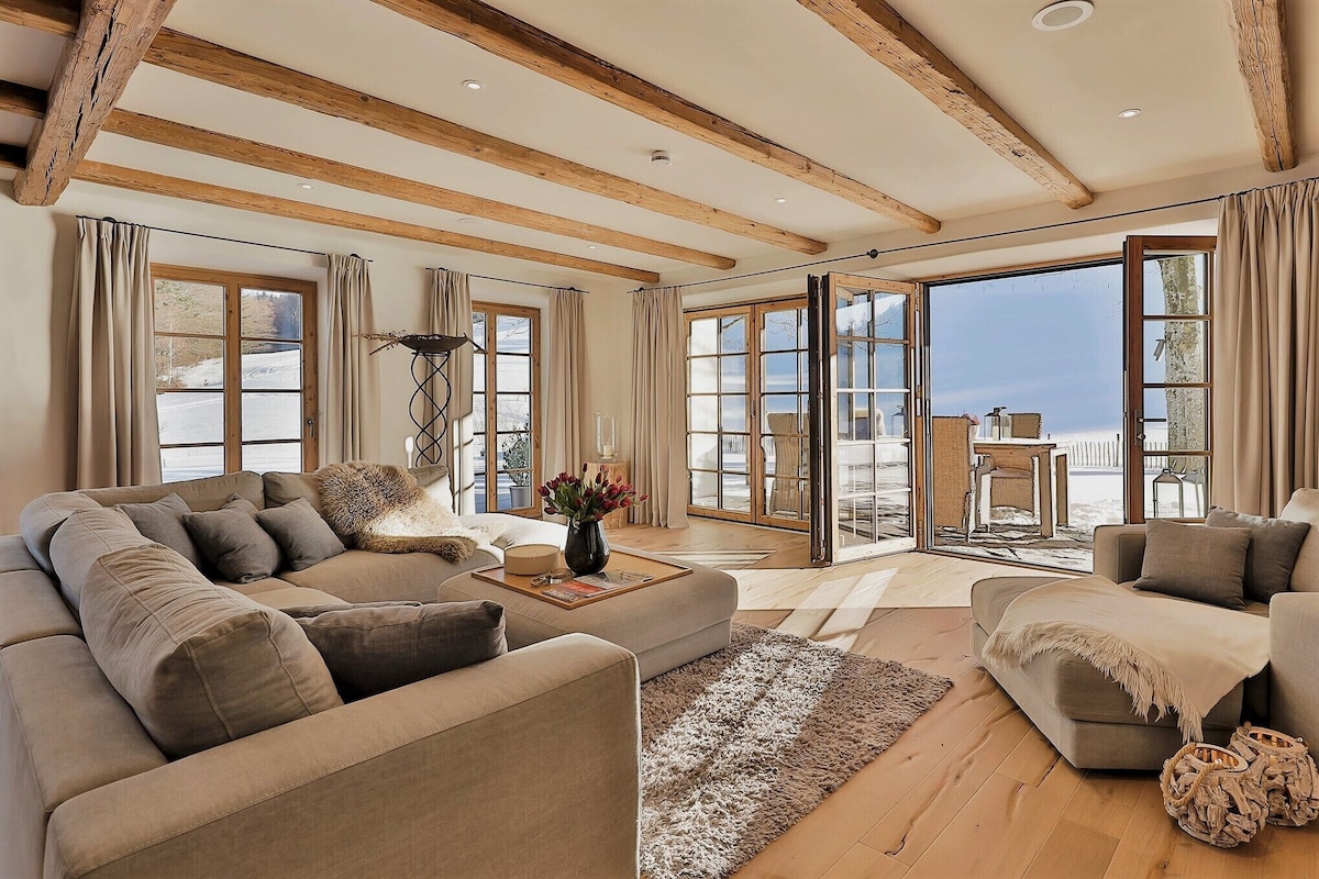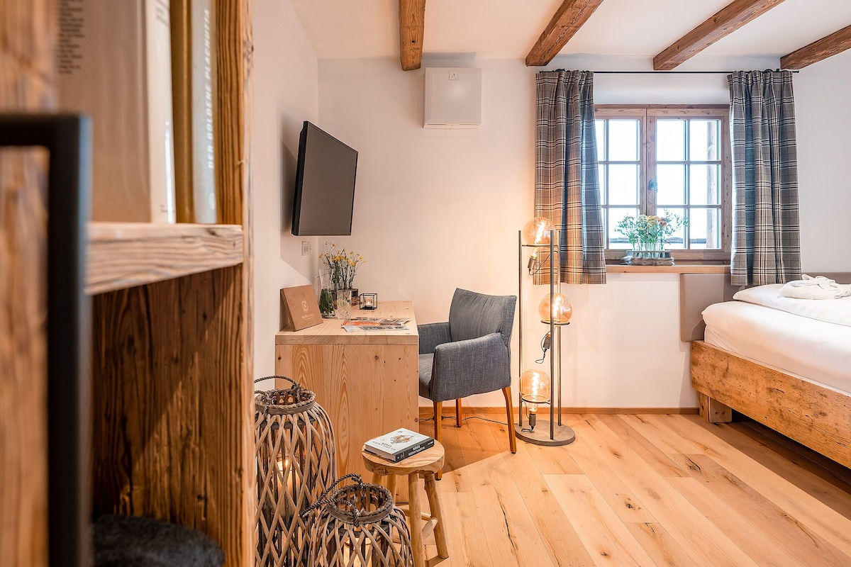 This chalet suite, furnished with lots of natural materials such as old wood, stone and glass, exudes a modern alpine charm of 100m². It has 2 bedrooms, a living room with a wood-burning fireplace, a fully equipped kitchen with its own wine cabinet, a private sauna in the bathroom, a cozy Hot Tube on the terrace and a separate entrance. Here only the horizon sets limits.