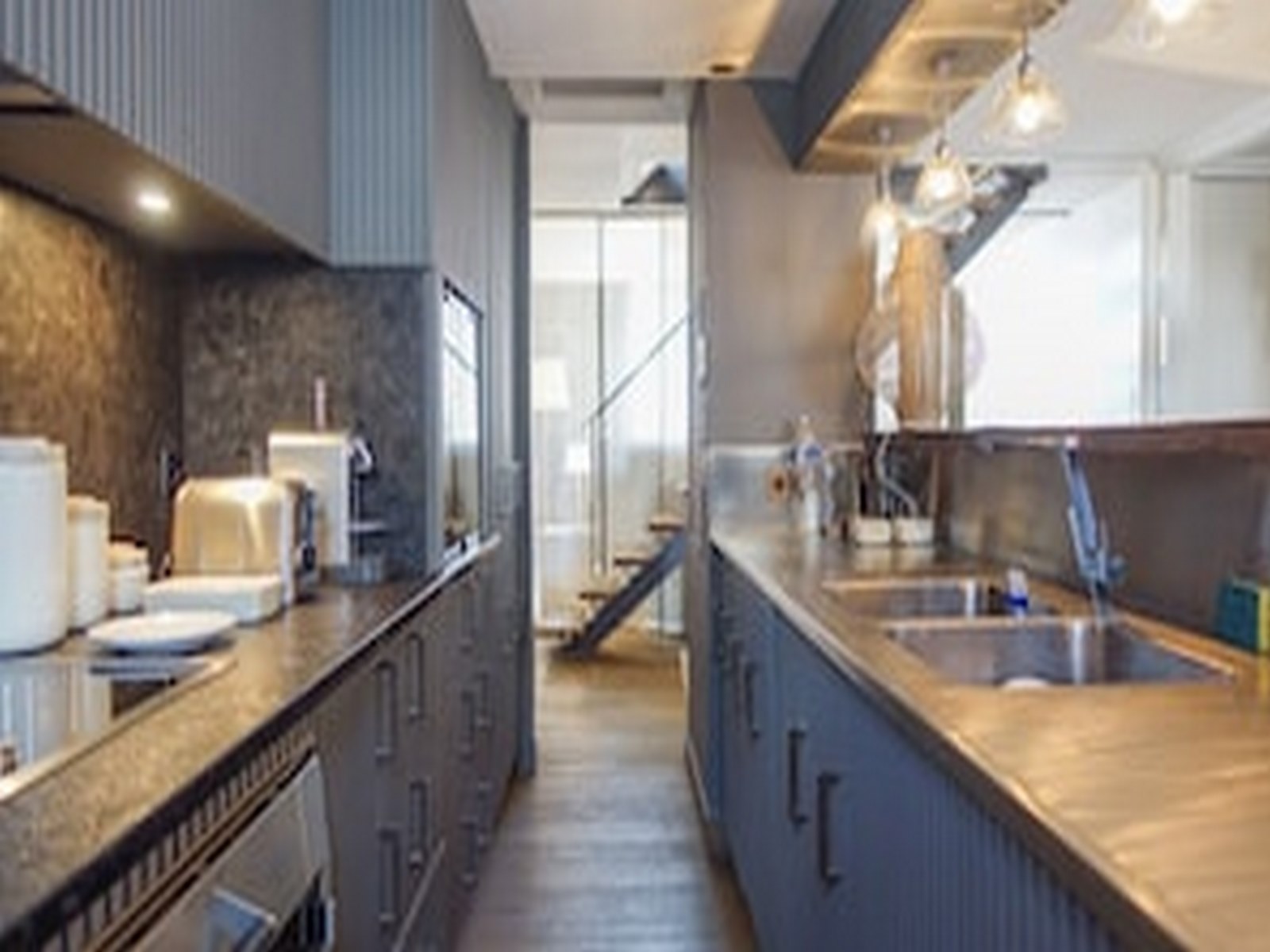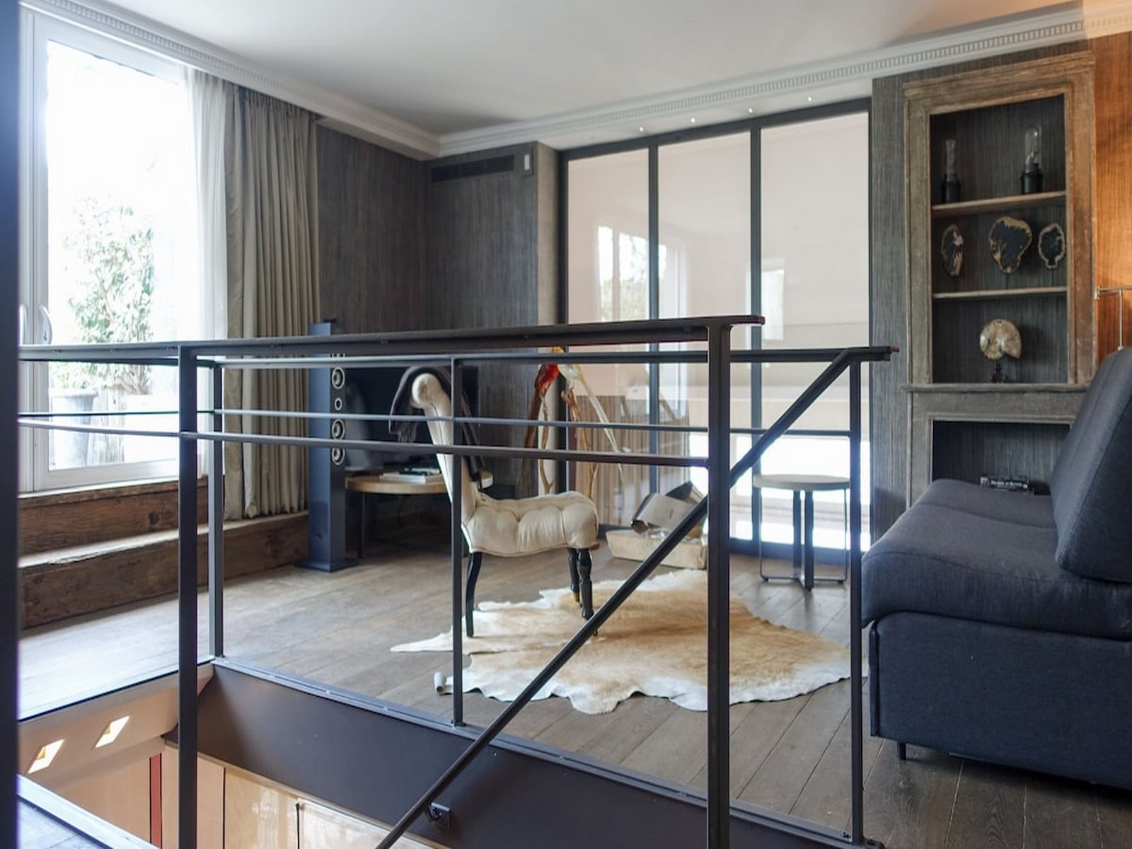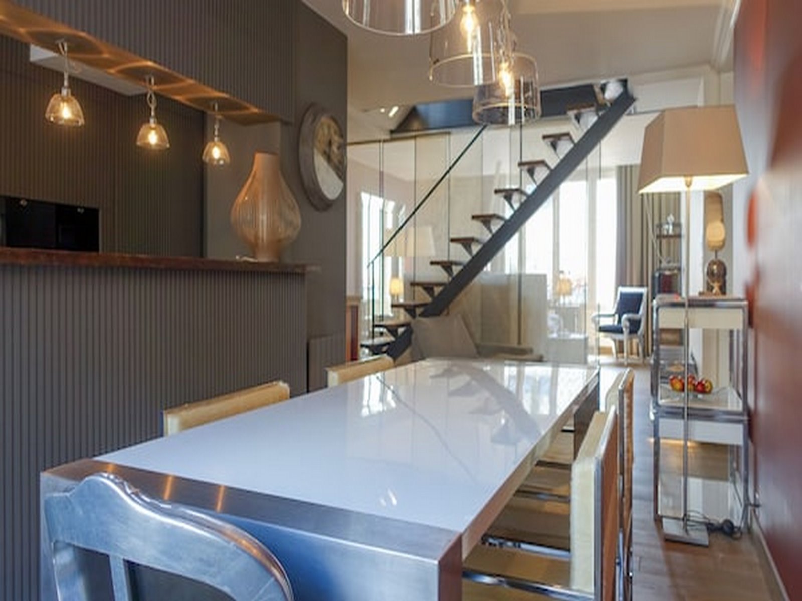 This beautiful duplex of 2150 sq ft has been recently renovated, with all modern conveniences. Set in a modern building next to the Pompidou center, on the fourth floor with a lift, facing south, this property is located in the heart of the Marais, the most vibrant arrondissement of Paris, in walking distance from many attractions like the Louvre, Picasso museum, Place des Victoires, Saint-Eustache’s church and even Notre Dame. The neighborhood is surrounded by many nice restaurants, organic stores, bakeries, supermarkets and liquor stores. All windows are double glazed and sound proof (although there is not much noise on this pedestrian area to begin with!)