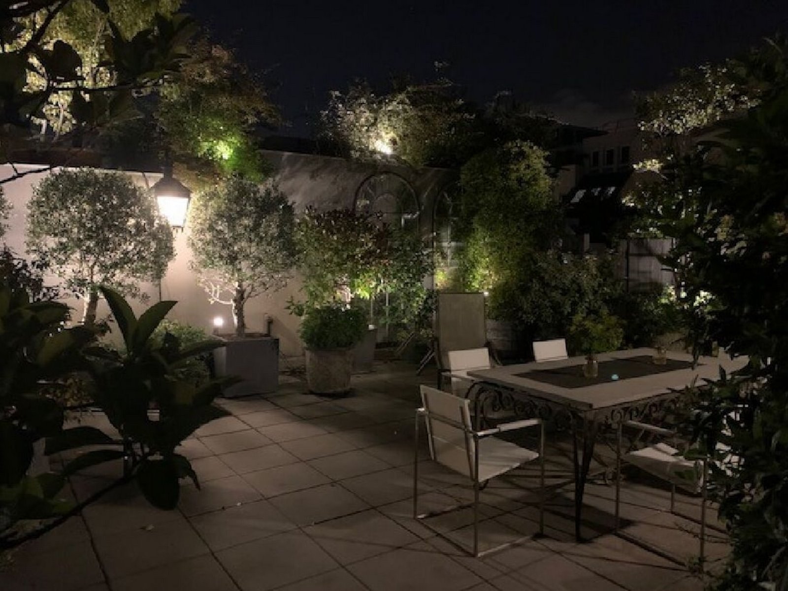 The apartment’s layout and its size will provide you with ample space to relax and to enjoy your own privacy. The living room set upstairs overlooks the gorgeous rooftop of 1615 sq ft with his flowers, tomatoes plants and even a palm tree. It also has a grill, long chair and a outdoor table for 6 people. Ideally suited for two couples or a family with children, the two bedrooms sleep 4 guests comfortably and a sofa bed will provide 2 additional persons. The 2 bedrooms are master bedrooms and have king size beds. There’s toilet in each bathroom and an additional one upstairs.