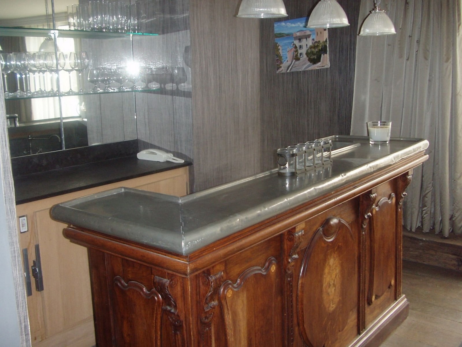 The sitting room is very large and has a modern dining table. The kitchen has been designed and equipped to enable you to cook a wonderful meal. It has a lovely, large black Carrara marble work area and faces the dining area.