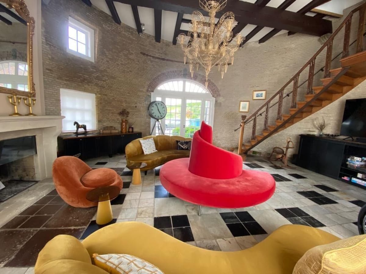The mill and added wing is a luxury home with its original features well preserved. Enjoy the great kitchen, lounge salon, huge living, fireplace, sauna, spa shower and private garden. All around are views of the town, harbors, pasture and river.