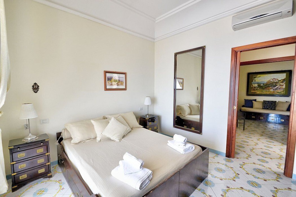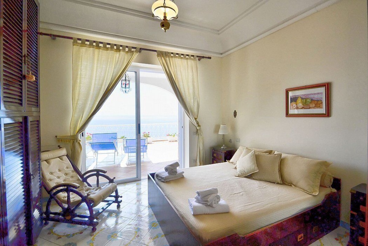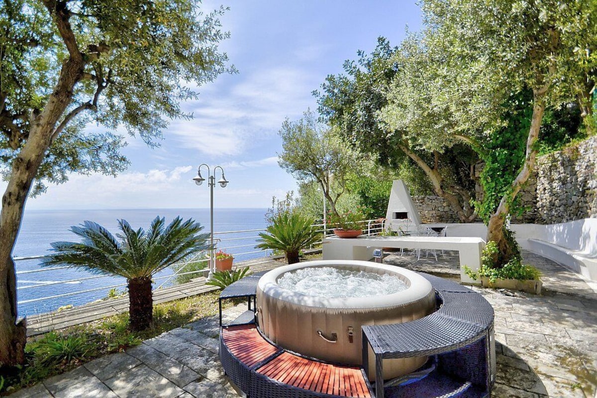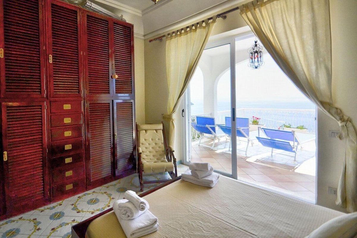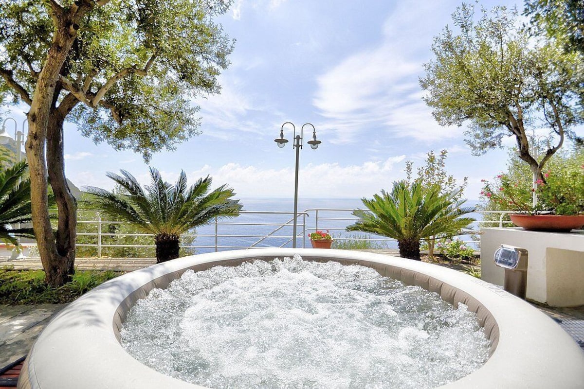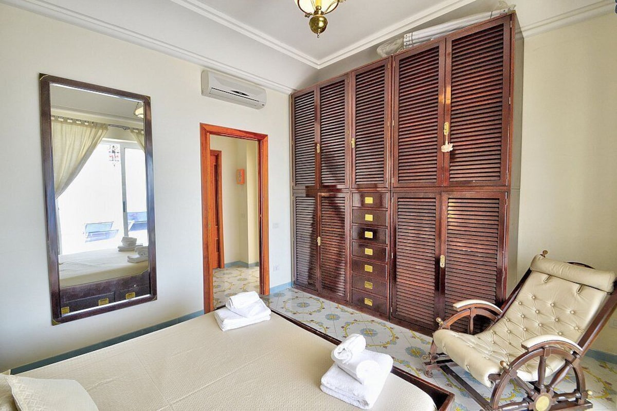 Appartamento is a pleasant and spacious apartment that covers the entire top floor of a villa built on the sloping cliff in front of the sea. It sleeps six people. From Appartamento A you will enjoy a gorgeous view of the sea and of the gulf of Salerno far in the horizon. Appartamento is 90 square meters (970 square feet). It features a private jacuzzi pool, two wide private terraces with a view of the sea, air conditioning (please read description below to check in which rooms the units are installed) and WI-FI Internet access.