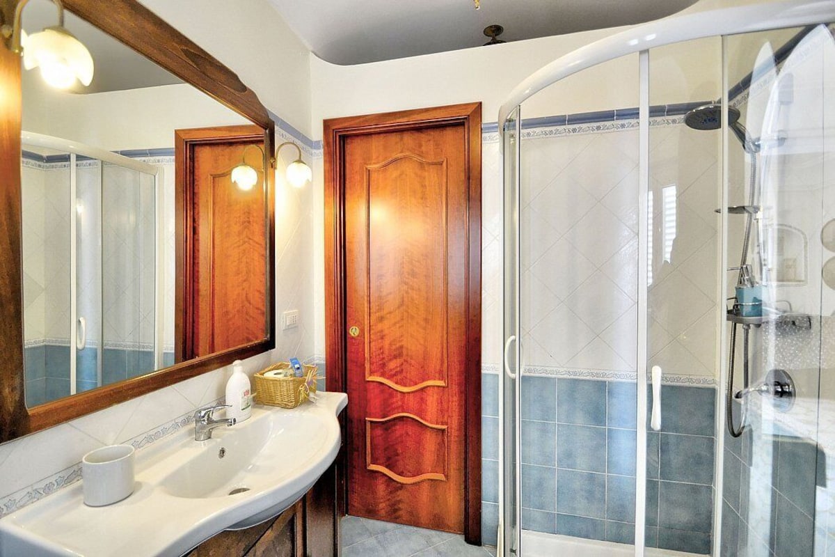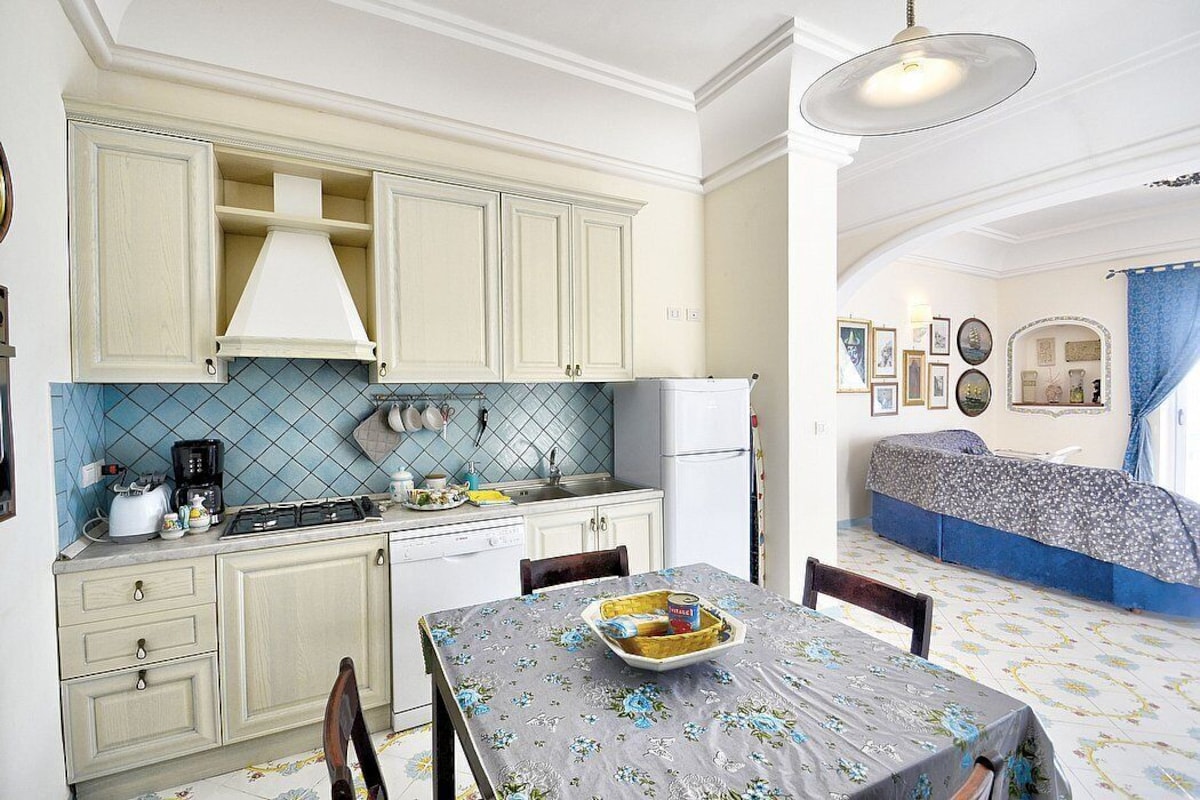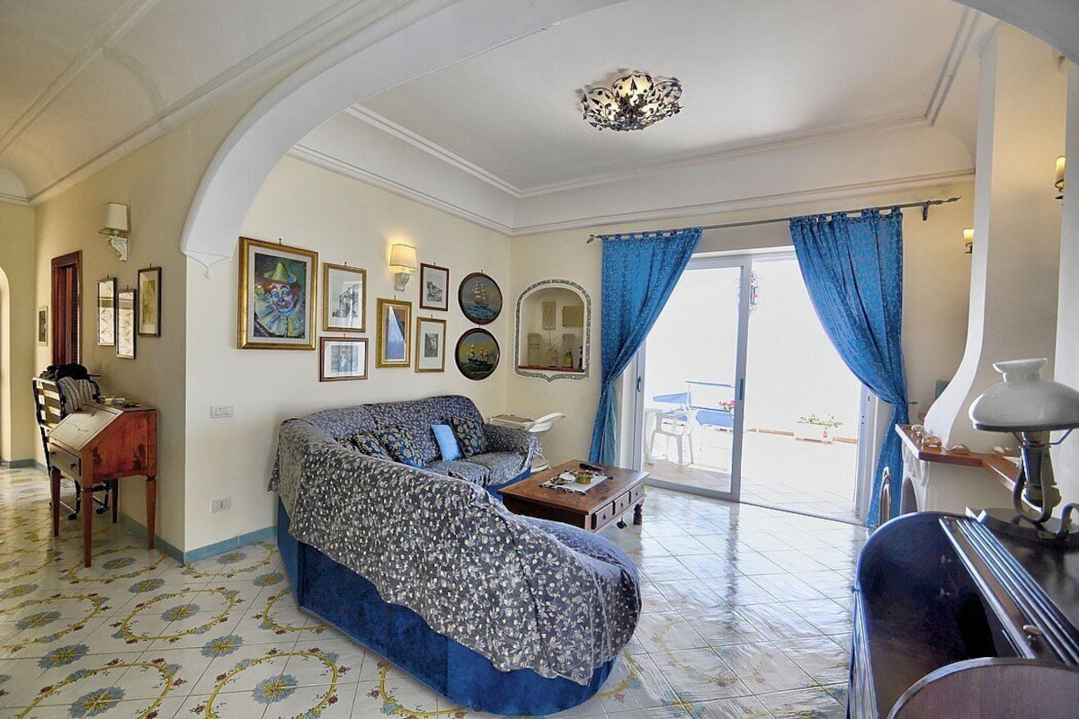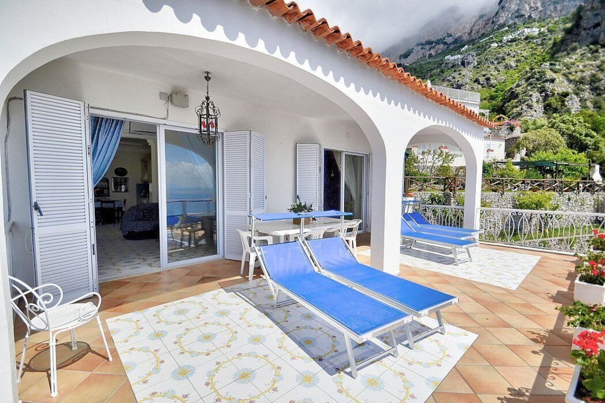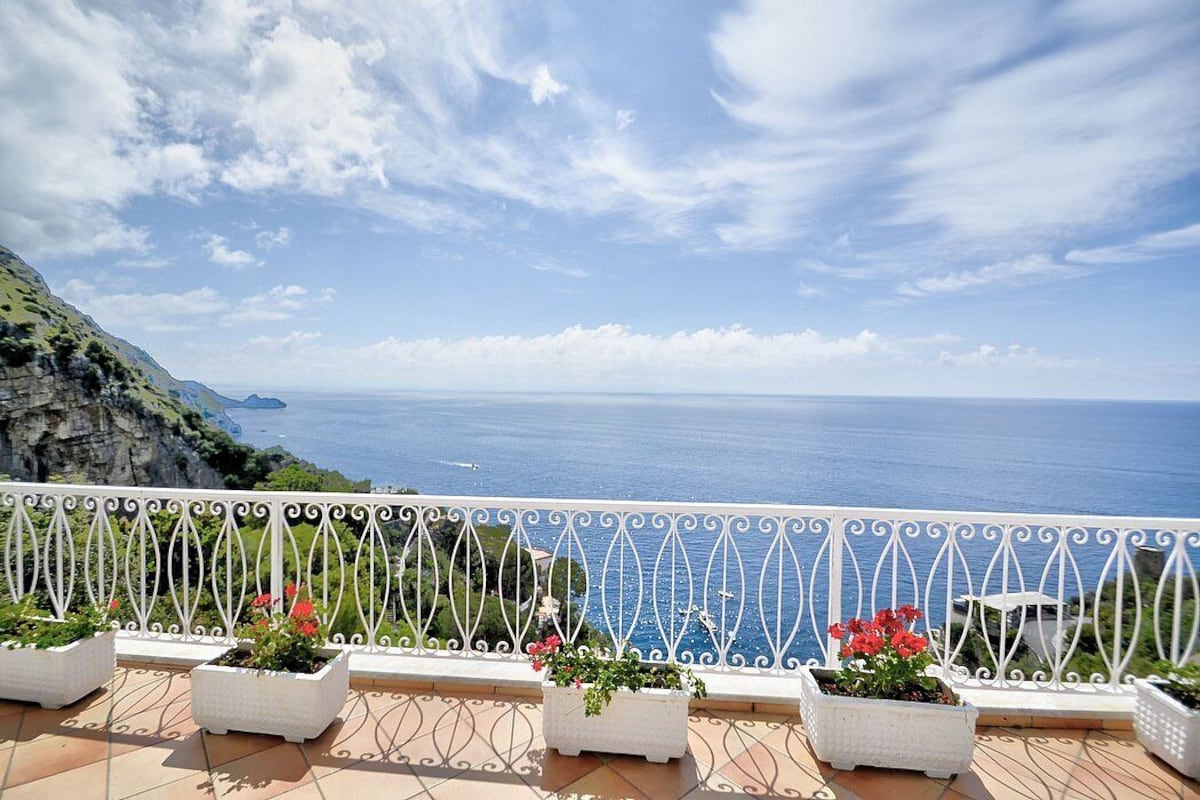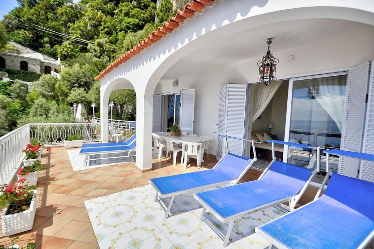 Appartamento is a pleasant and spacious apartment that covers the entire top floor of a villa built on the sloping cliff in front of the sea. It sleeps six people. From Appartamento A you will enjoy a gorgeous view of the sea and of the gulf of Salerno far in the horizon. Appartamento is 90 square meters (970 square feet). It features a private jacuzzi pool, two wide private terraces with a view of the sea, air conditioning (please read description below to check in which rooms the units are installed) and WI-FI Internet access.