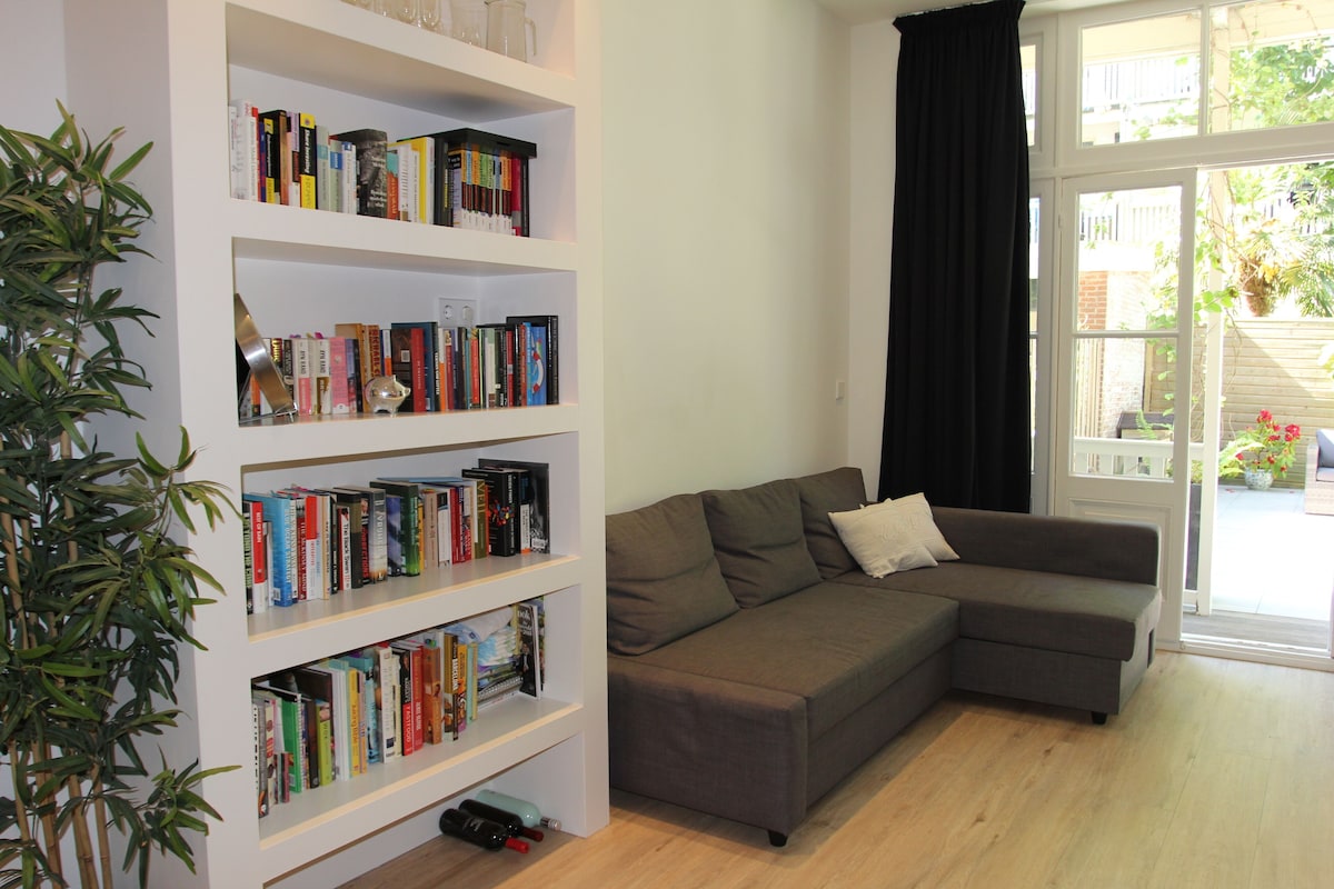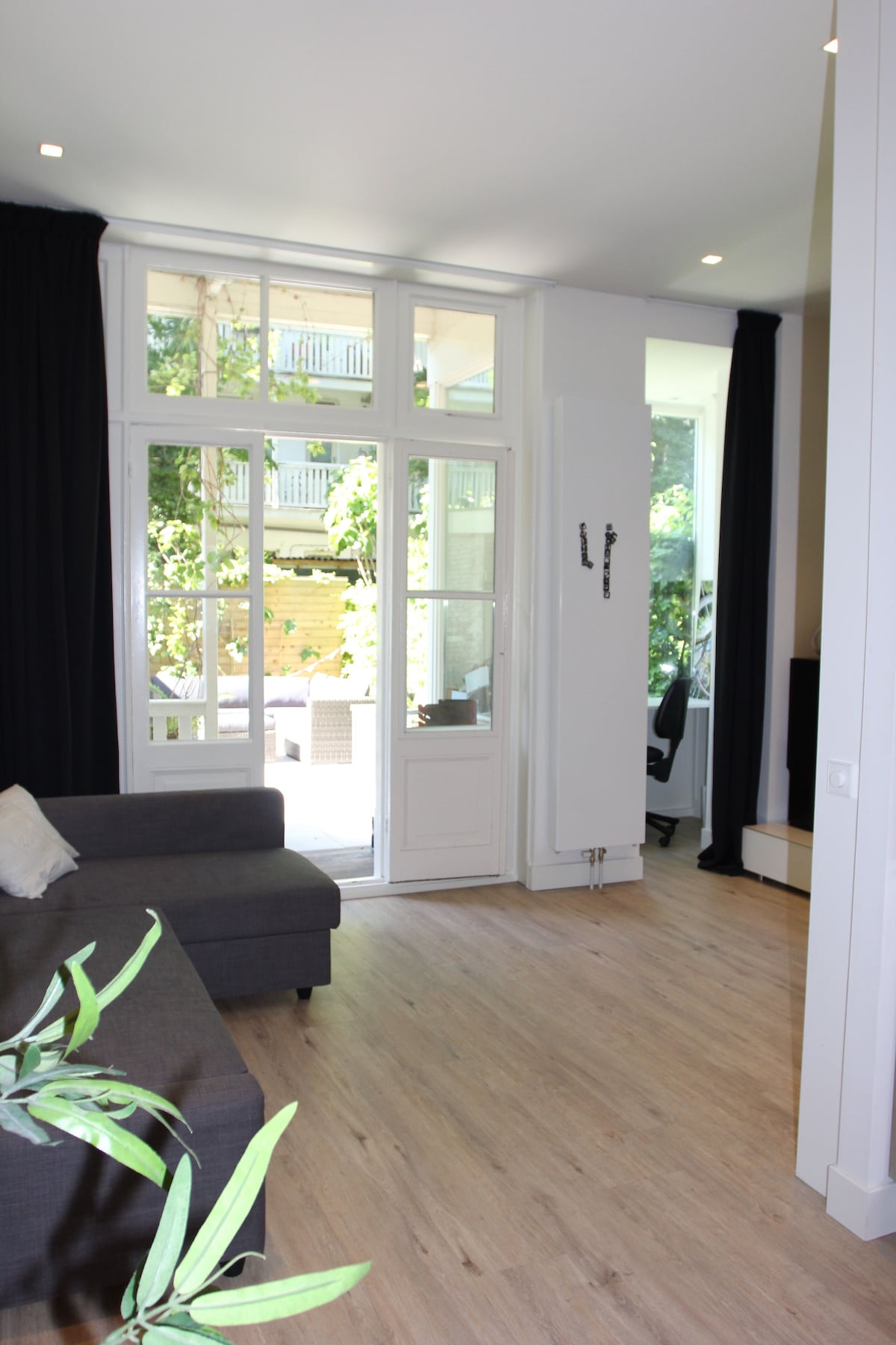 Our recently renovated spacious apartment with garden combines the peace and quiet of the Vondelpark with the liveliness of the city. Perfect for families or couples. The apartment has three double beds, one single bed, a full kitchen and two bathrooms (one full incl a bathtub and one which is en suite with the master bedroom upstairs).