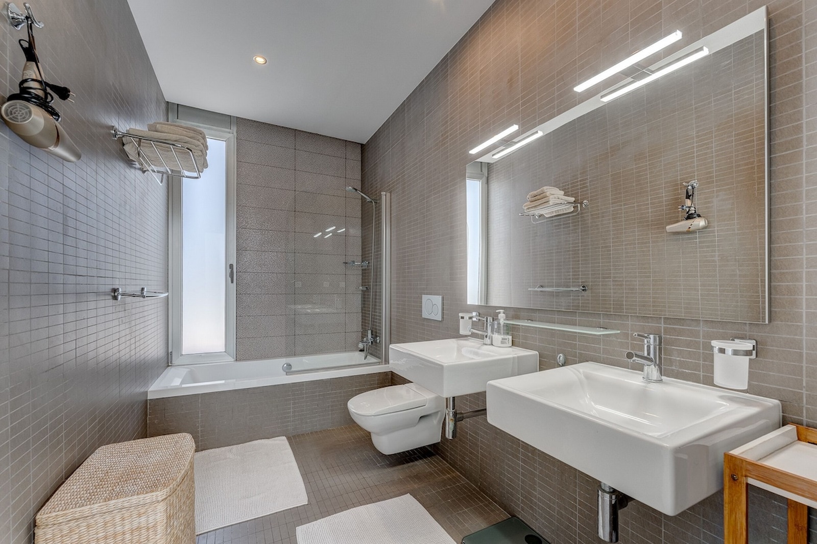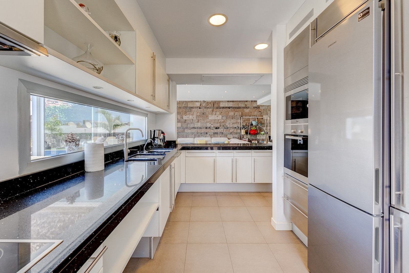 Kitchen is fully equipped with moder appliances: refrigerator, electric stove, oven, microwave, dishwasher, coffee maker, grill, etc.;