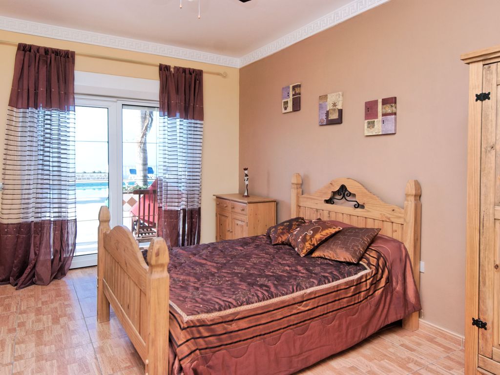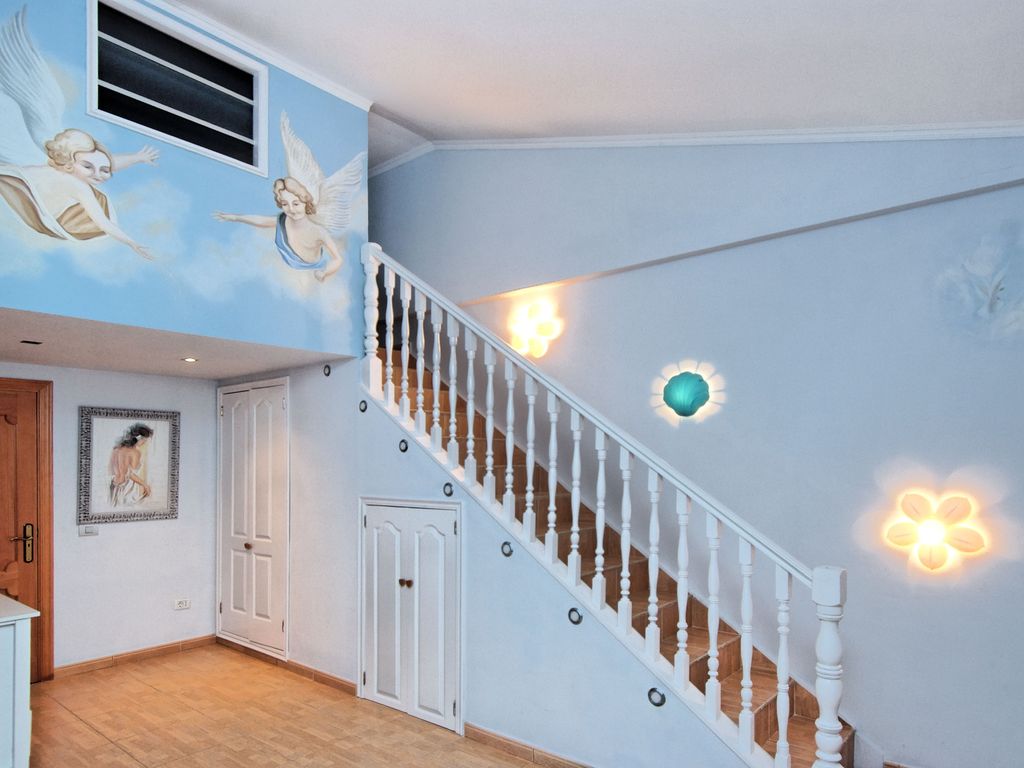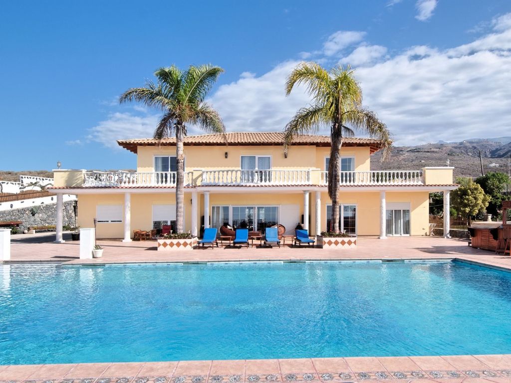 Beautiful villa less than 10 mins away from Las Americas. Sleeps up to 20 people (supplement after 16). Huge south facing pool with sunken bar. Panoramic views. Private and not overlooked. Separate garden. Shaded outdoor dining area. Large jacuzzi (optional extra). Themed beach area. Basketball and ping pong. Trampoline.