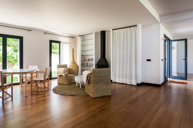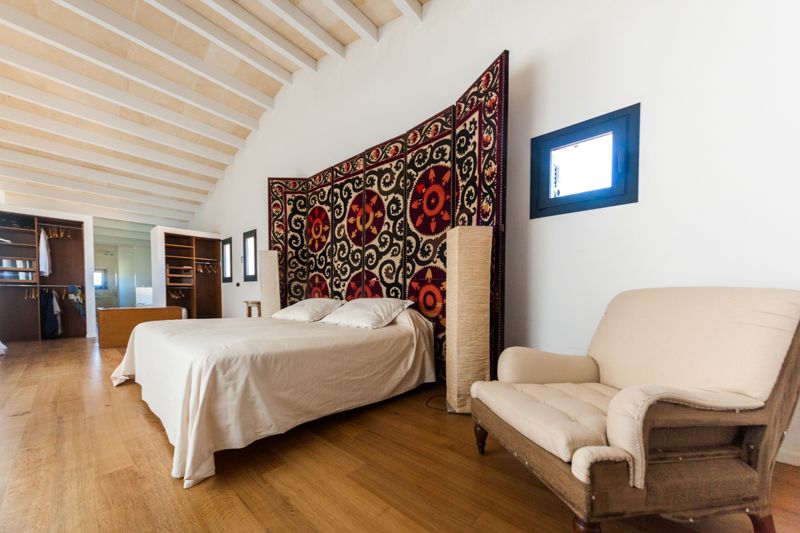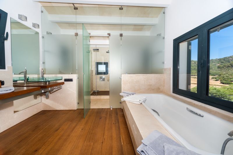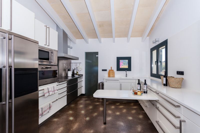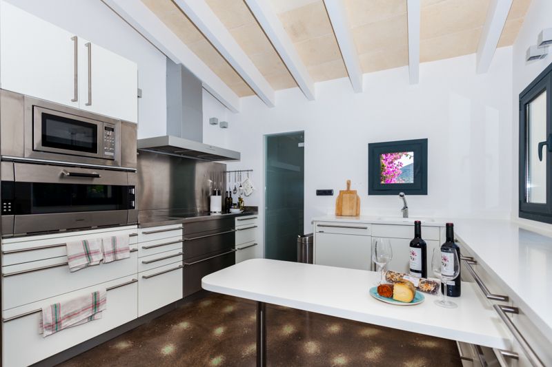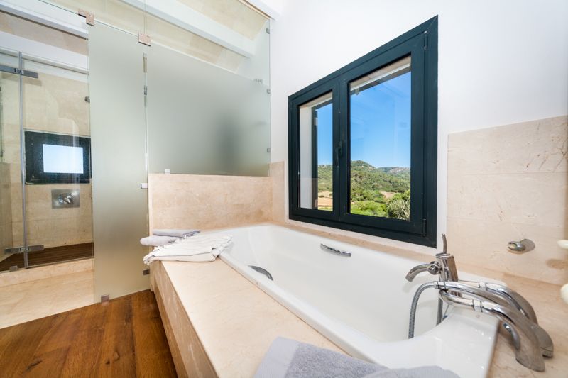 The main house is comprised of two ample levels, fully equipped with air conditioning, heat and Wi-Fi. The home’s ground floor is absolutely stunning with incredible valley views with its main living area of over 1600sq feet with TV, divided into two distinct areas. The gourmet kitchen sits adjacent to a cozy dining room for four, with seating area in front of a wood burning fireplace. Rounding out this living level is a formal dining room with seating for up to 18 guests, as well as a guest room with king size bed and en suite bath with both tub and shower.