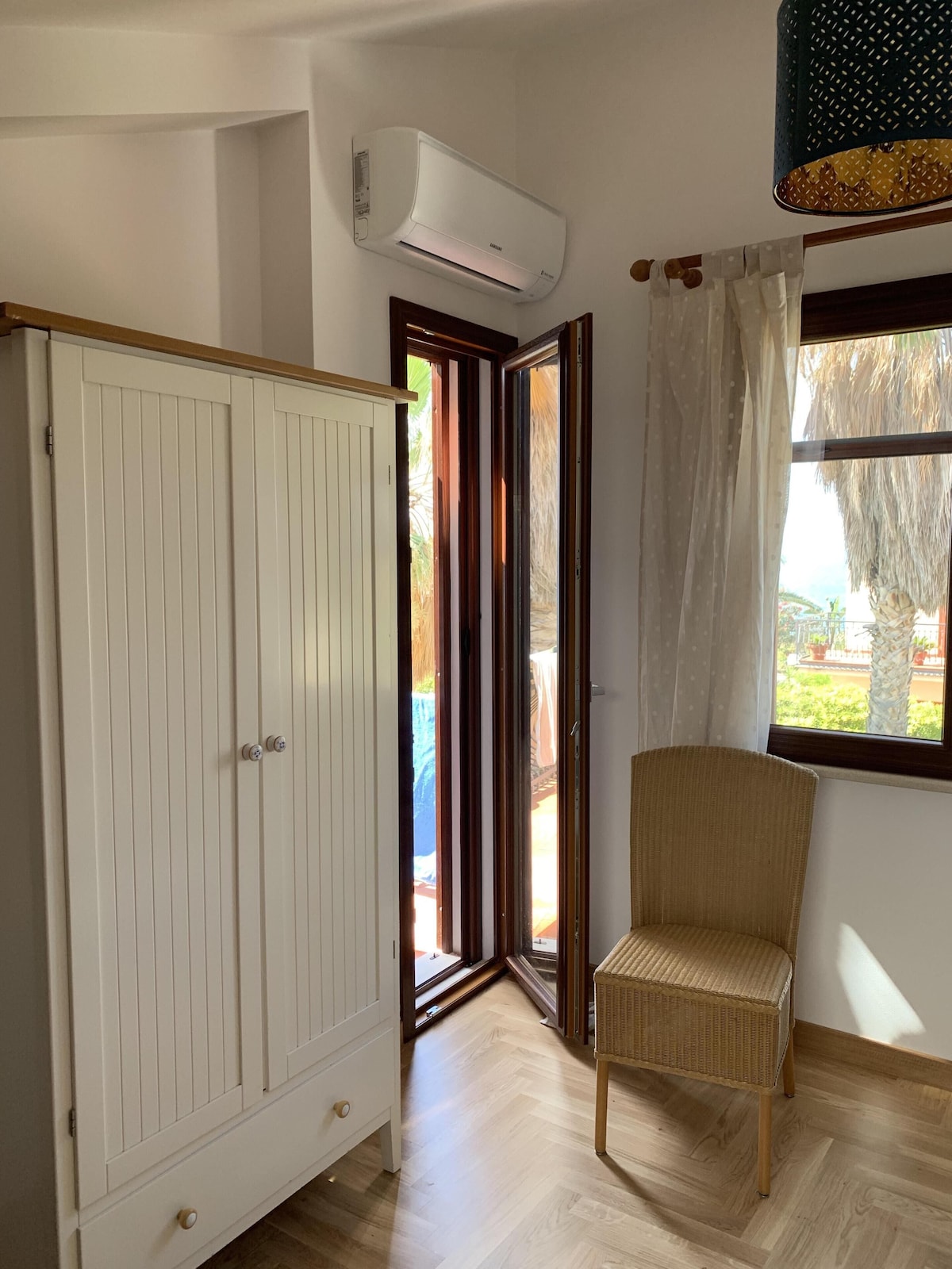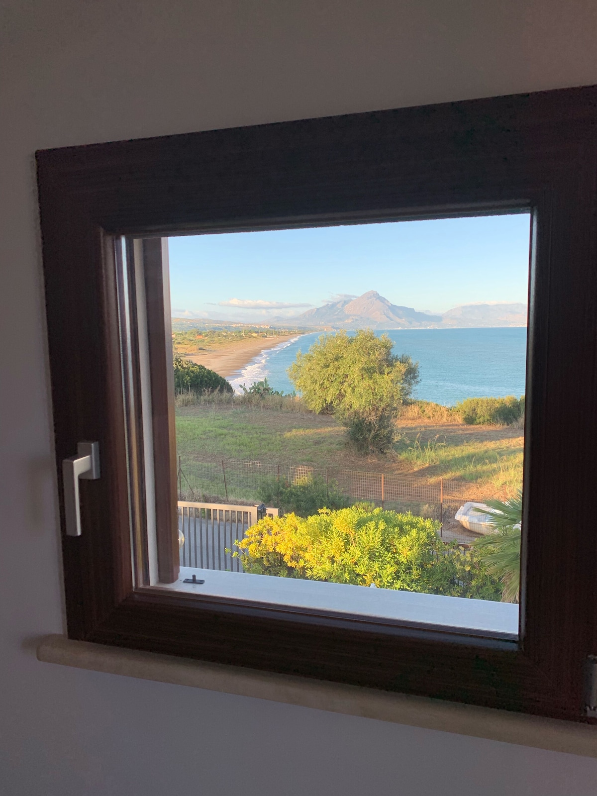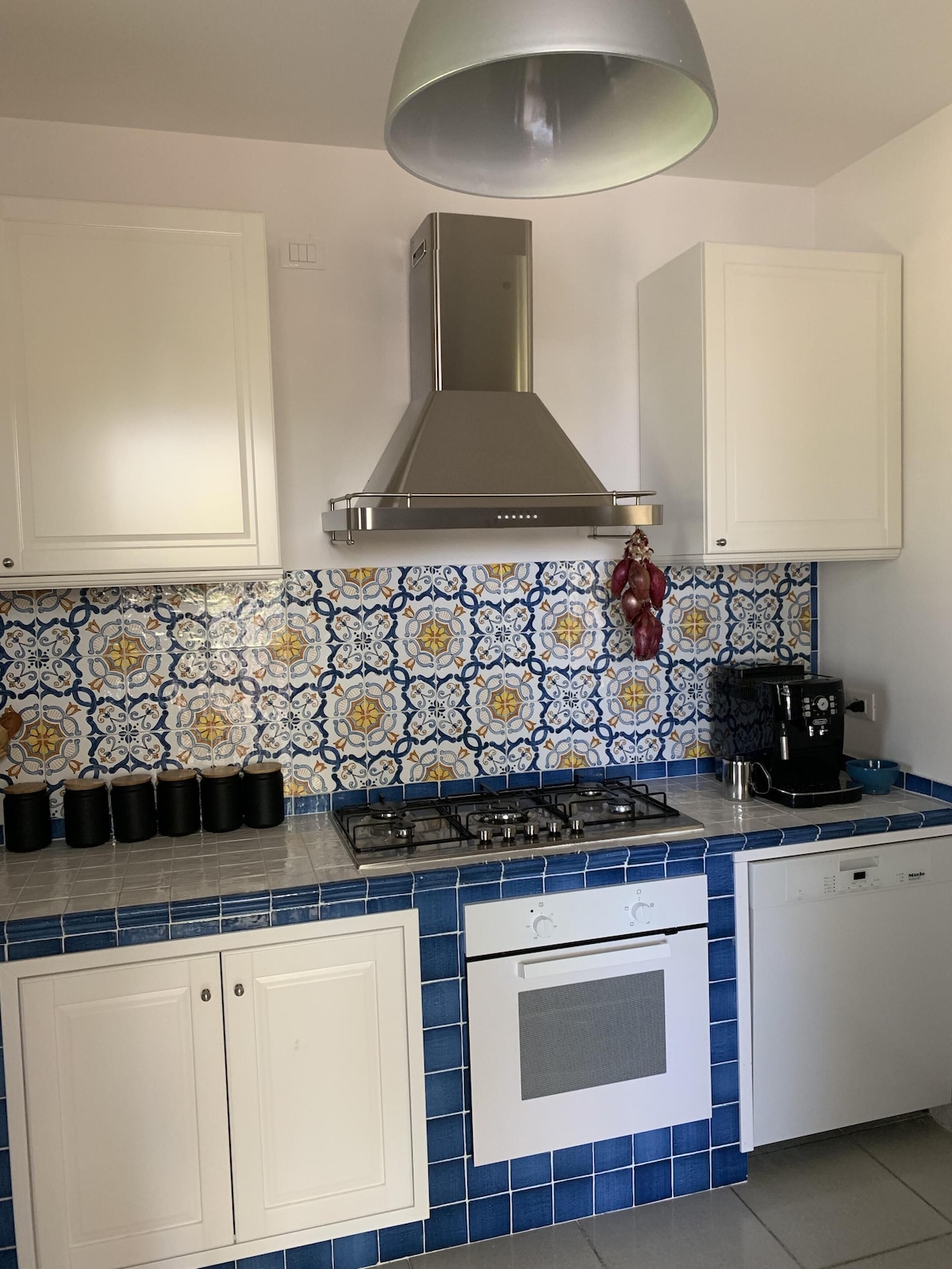 The villa is surrounded by a spacious garden with several garden loungers, a sunshade, a Sicilian outdoor kitchen and a spacious outdoor dining table for 10 people. The villa is two-storey and has a total of 4 bedrooms with 7 beds. On the upper floor there are two bedrooms with king-size beds (160 x 200 cm) and a single bedroom with a single bed (90 x 200 cm), a shower room and a toilet. There is also a spacious terrace with awning overlooking the sea and the Madonie Mountains. On the ground floor there is a spacious living and dining room with a cast-iron oven for cold evenings, another bedroom with a king-size bed (160 x 200 cm) with shower room and a Sicilian-style brick kitchen. All amenities such as dishwasher, washing machine and coffee machine are available in the house. The house is furnished with modern furniture.