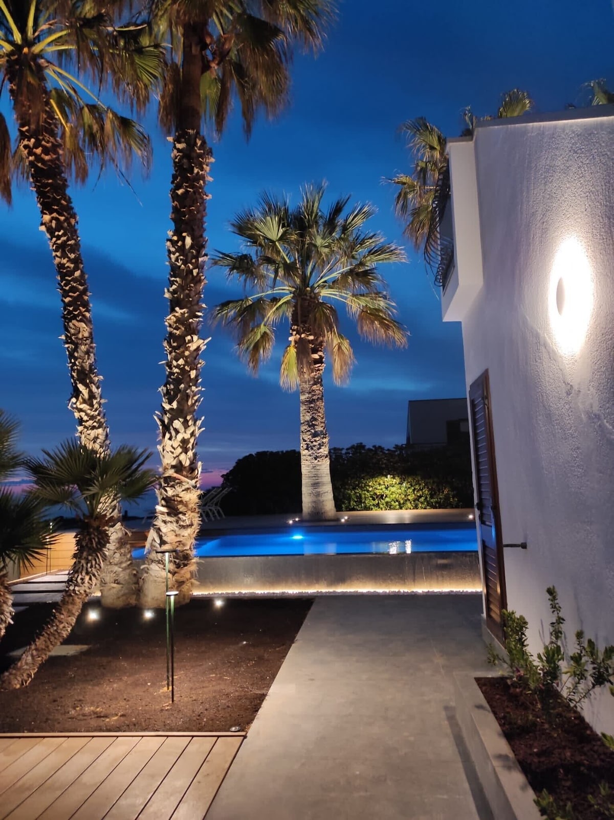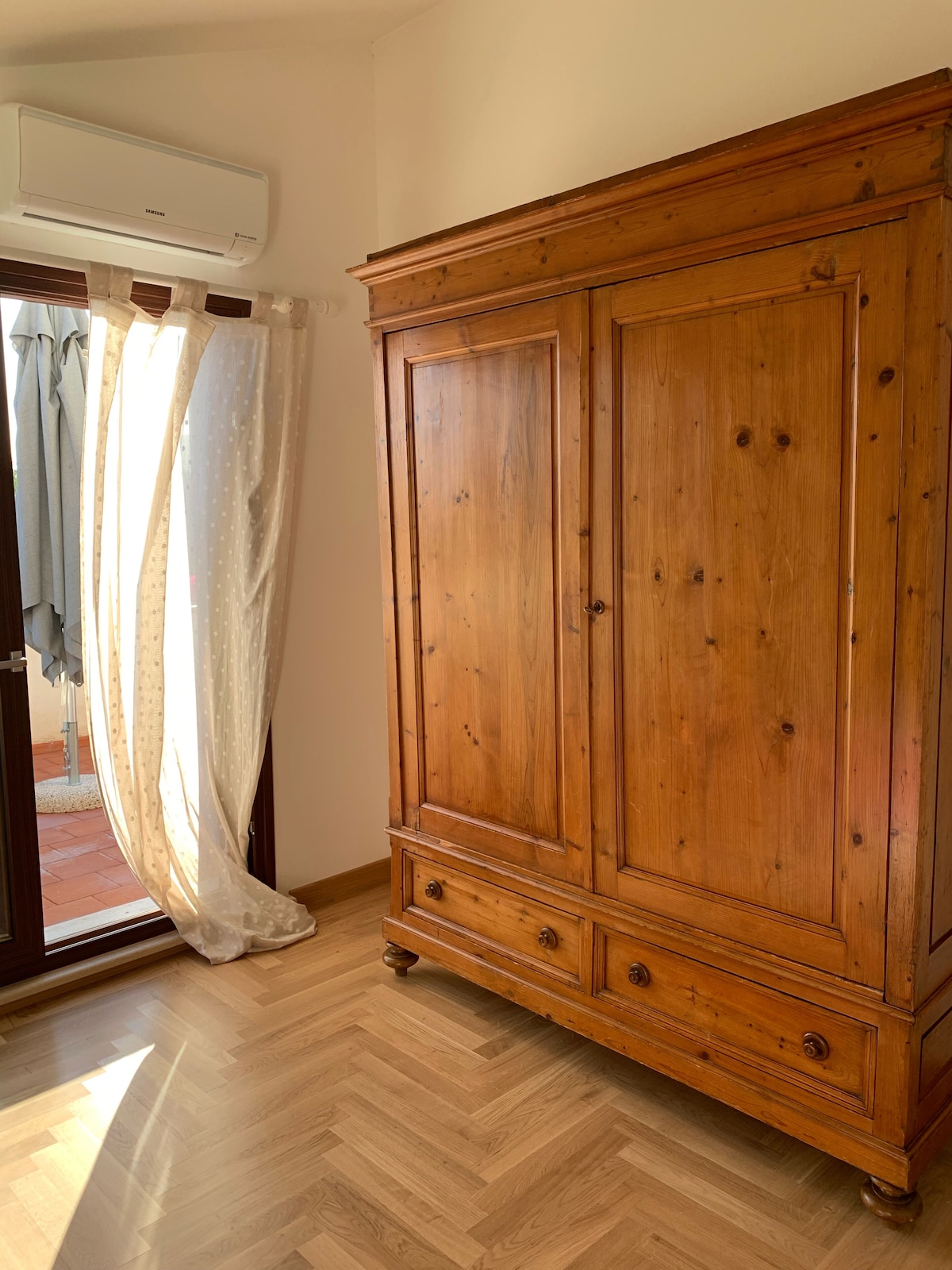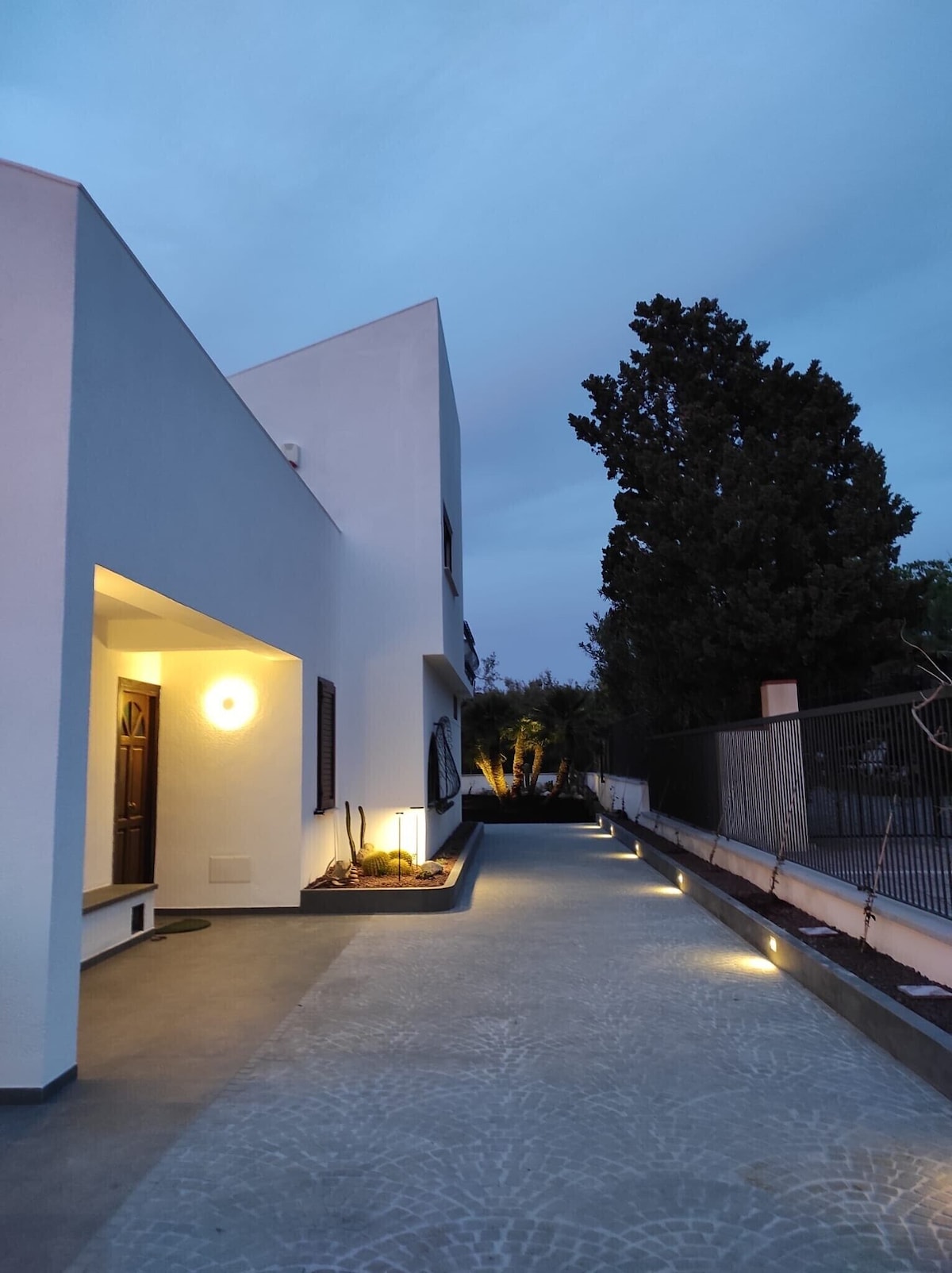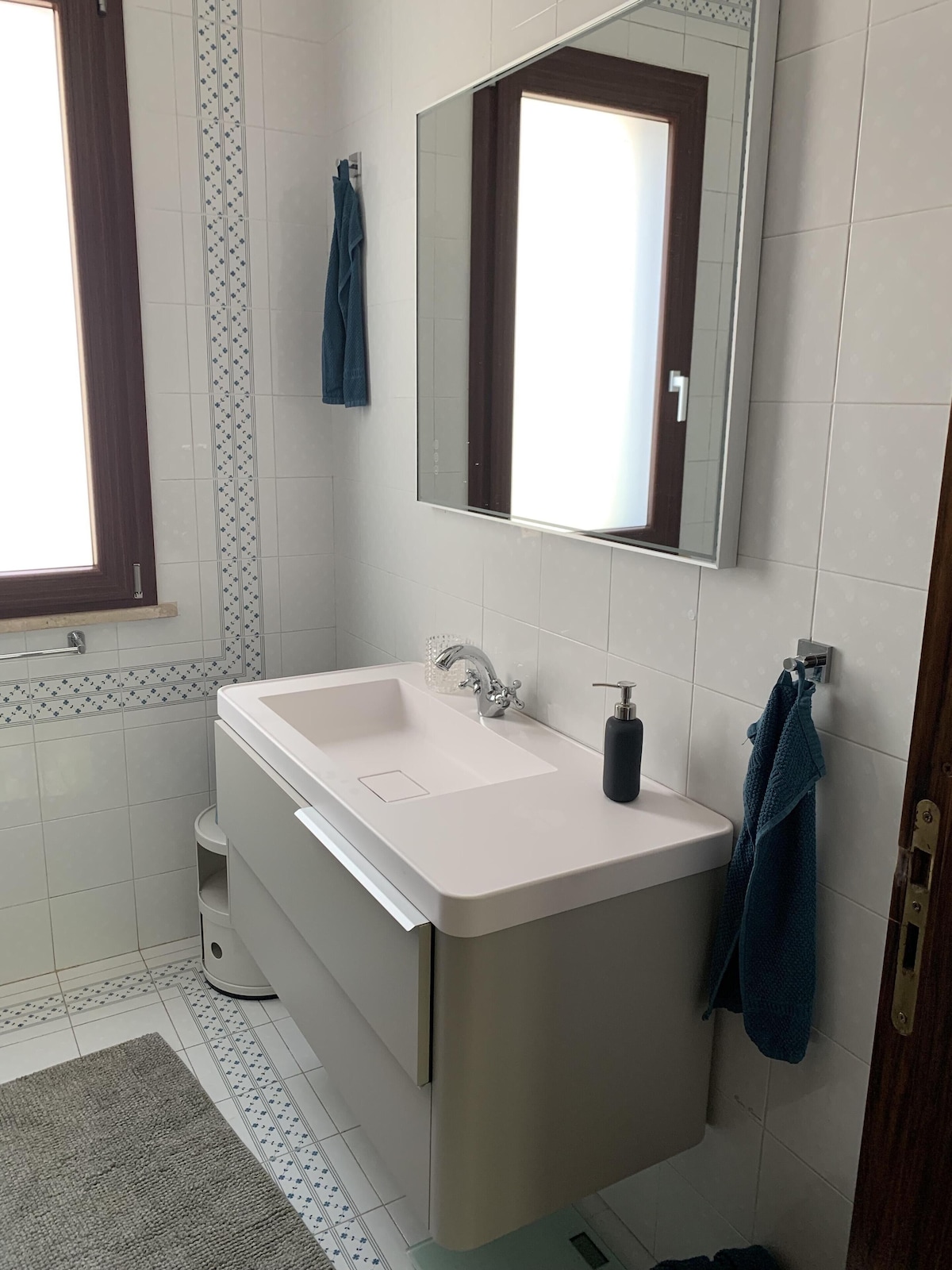 The villa is surrounded by a spacious garden with several garden loungers, a sunshade, a Sicilian outdoor kitchen and a spacious outdoor dining table for 10 people. The villa is two-storey and has a total of 4 bedrooms with 7 beds. On the upper floor there are two bedrooms with king-size beds (160 x 200 cm) and a single bedroom with a single bed (90 x 200 cm), a shower room and a toilet. There is also a spacious terrace with awning overlooking the sea and the Madonie Mountains. On the ground floor there is a spacious living and dining room with a cast-iron oven for cold evenings, another bedroom with a king-size bed (160 x 200 cm) with shower room and a Sicilian-style brick kitchen. All amenities such as dishwasher, washing machine and coffee machine are available in the house. The house is furnished with modern furniture.