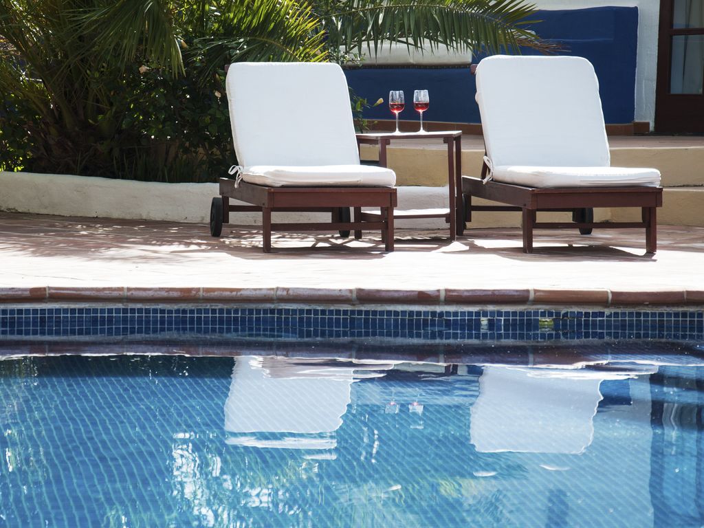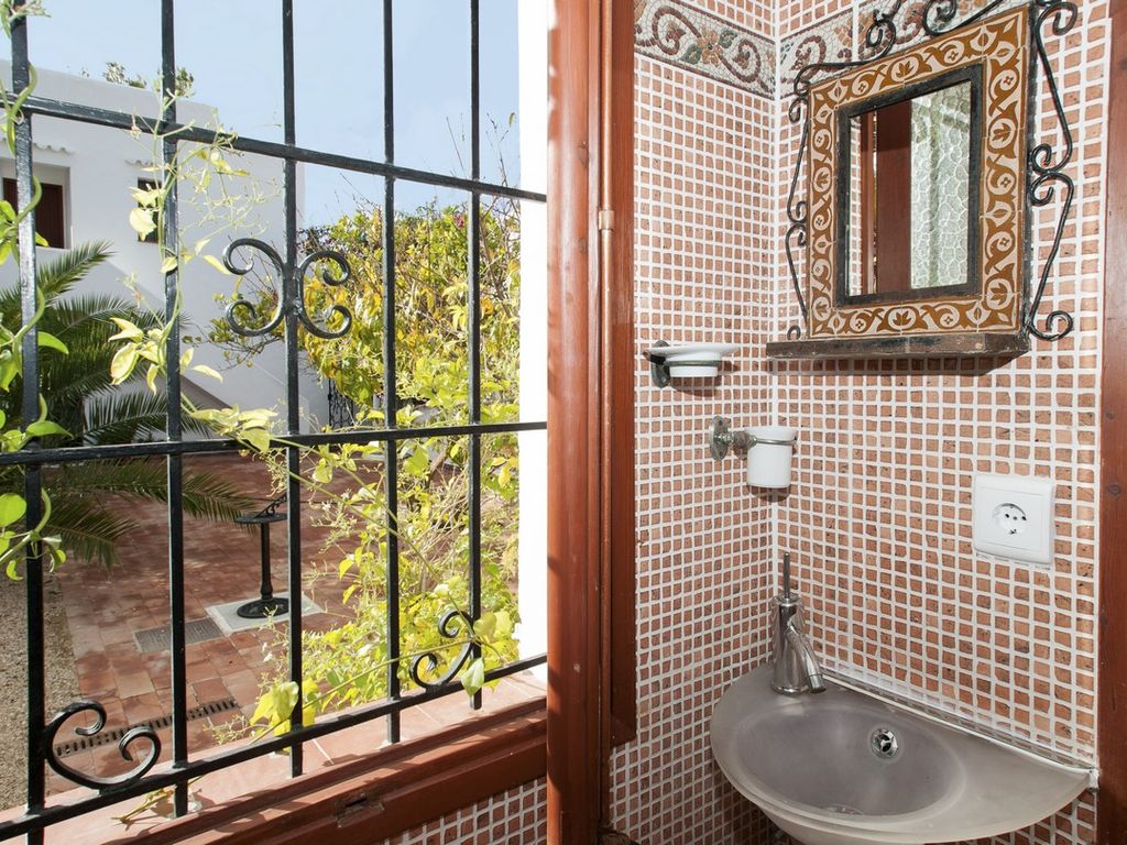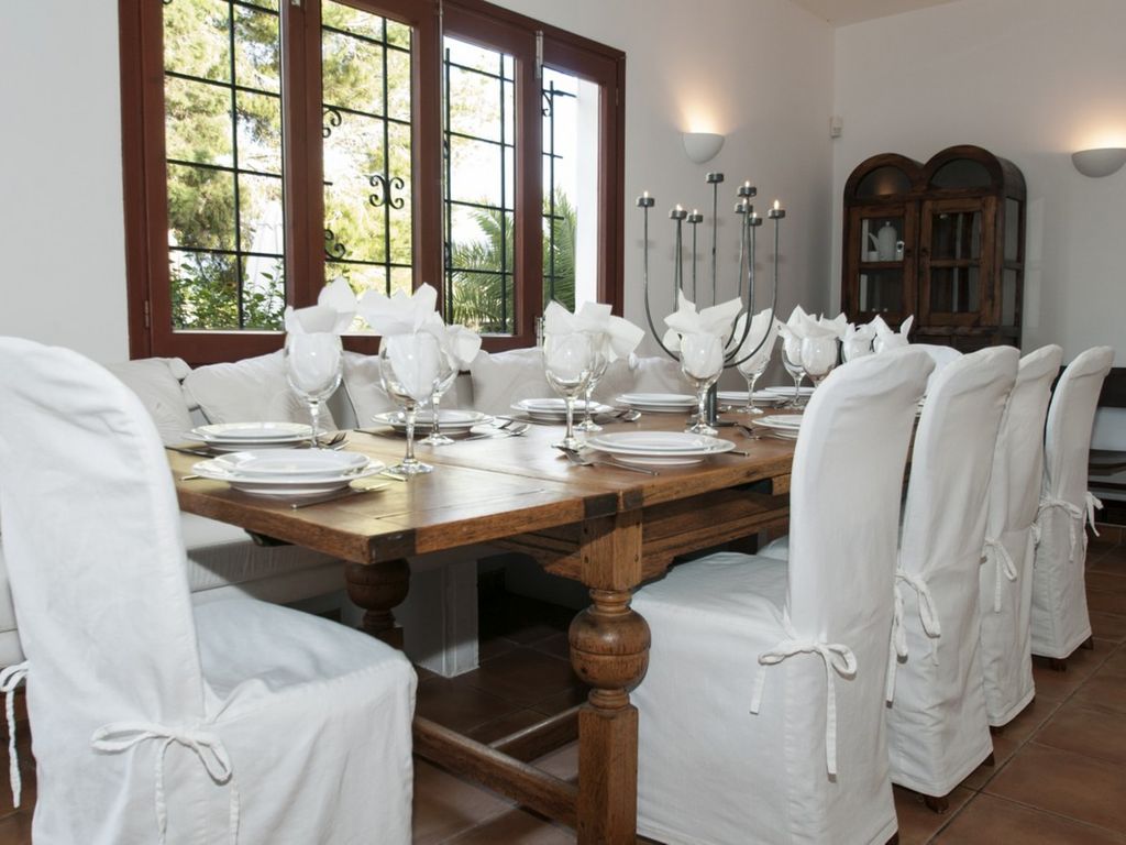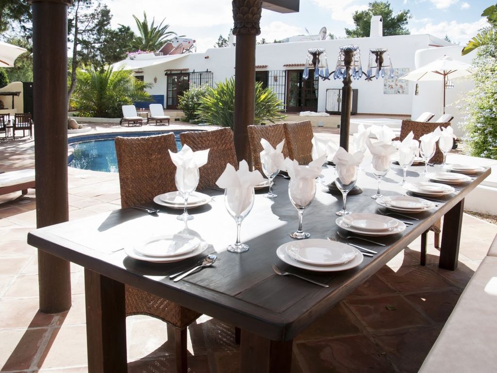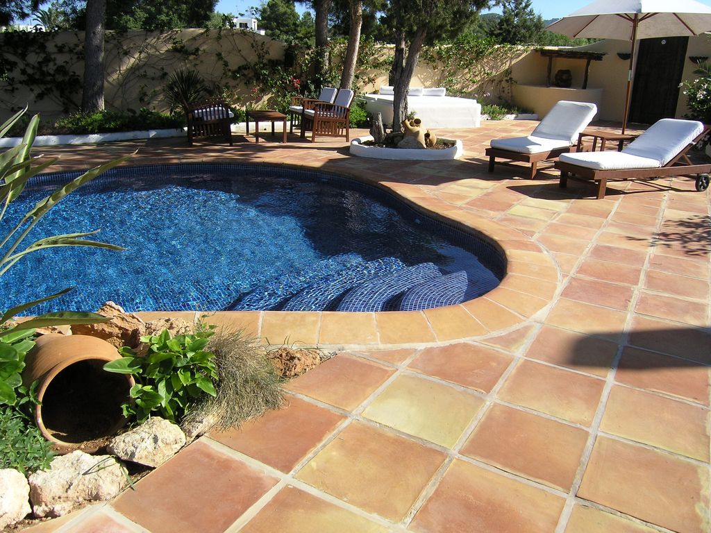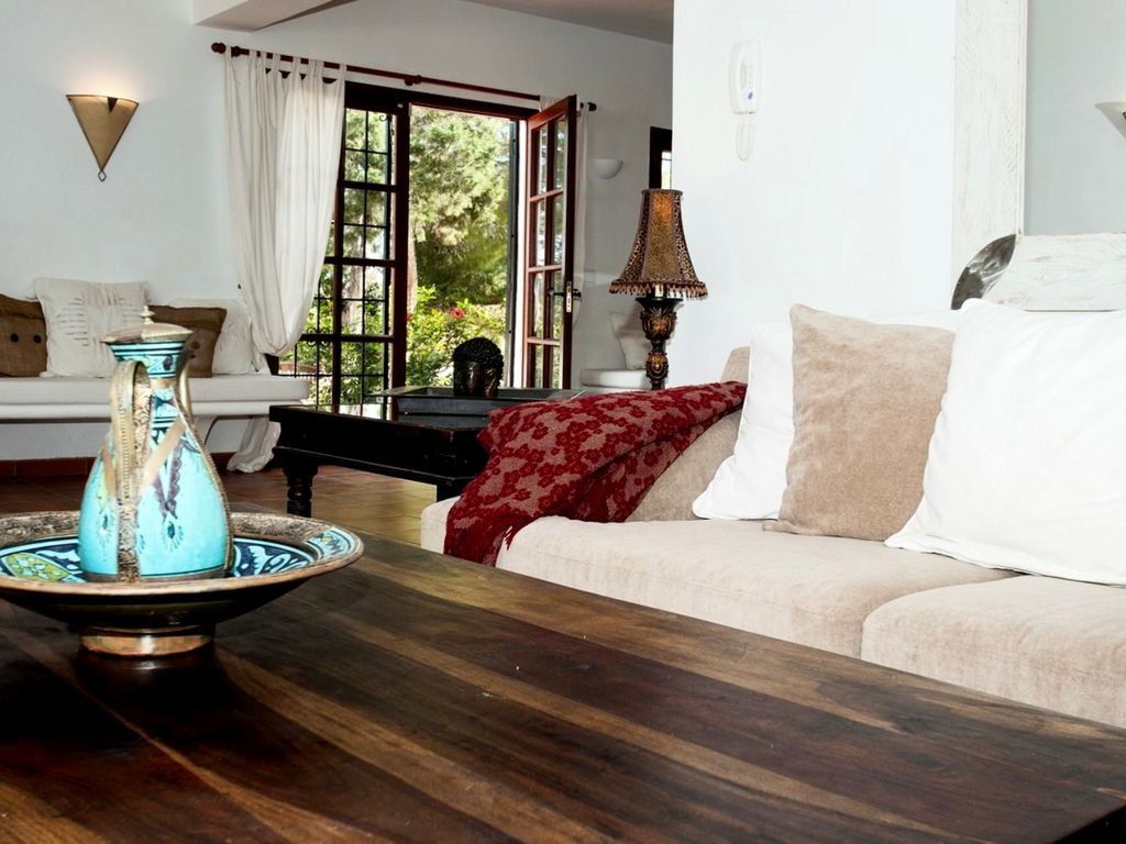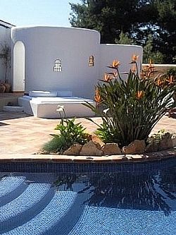 Stunning, fully renovated, finca (Ibicencan country house), set in 3,000+ sq.ft. Perfectly secluded in its own gated (electric), private land (approx 3,000sq.m). Situated in the tranquil campo but only 5-10 mins walk to beaches, shops, bars, cafe’s and restaurants. Stylish, comfortable furnishings and fabrics to the highest International standards. Beautiful lounge and dining room, 1,000sq.ft, double doors opening to pool complex + courtyard. Master suite with king divan bed, iron bedstead.
