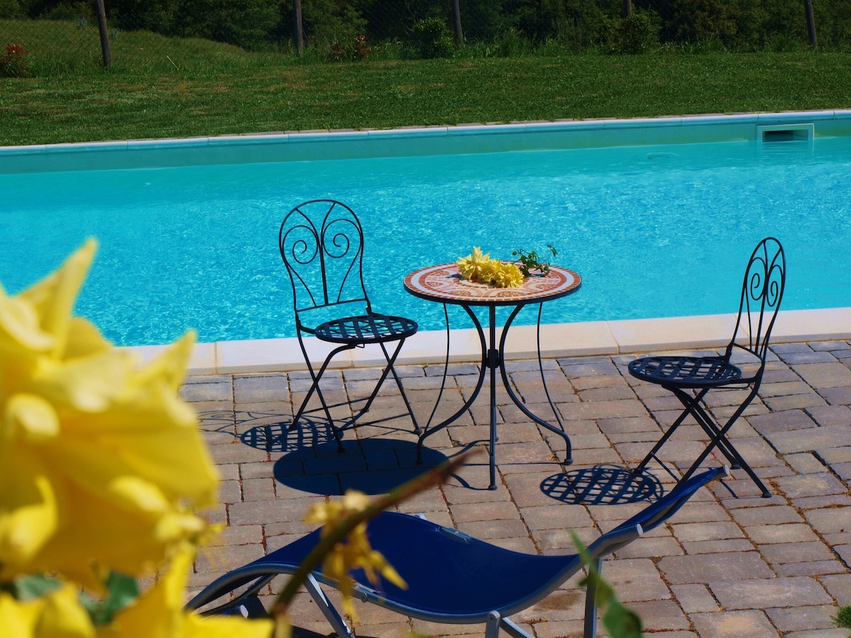 The large private garden with a wonderful panoramic swimming pool overlooking the hills is equipped with 2 gazebos, tables, deck chairs to guarantee you a relaxing holiday. In the laundry room you can find a washing machine and an iron. The BBQ is 10 meters from the villa.