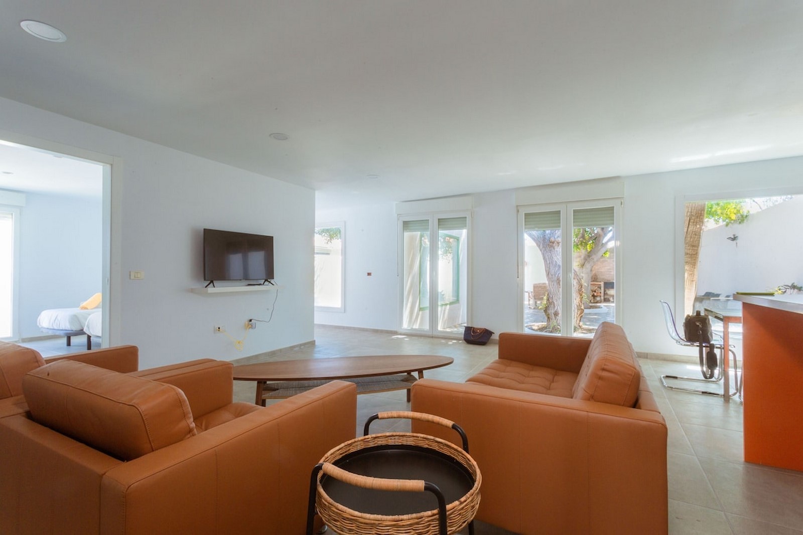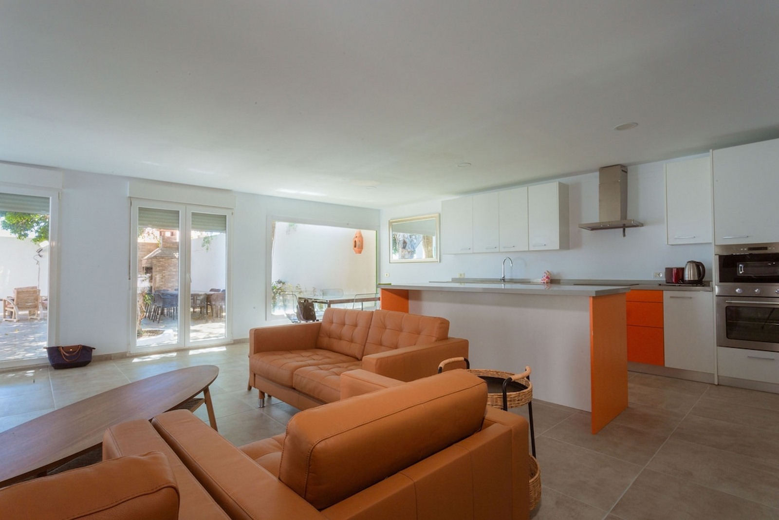 Living room, fully equipped kitchen with TV (all channels) and wi-fi.