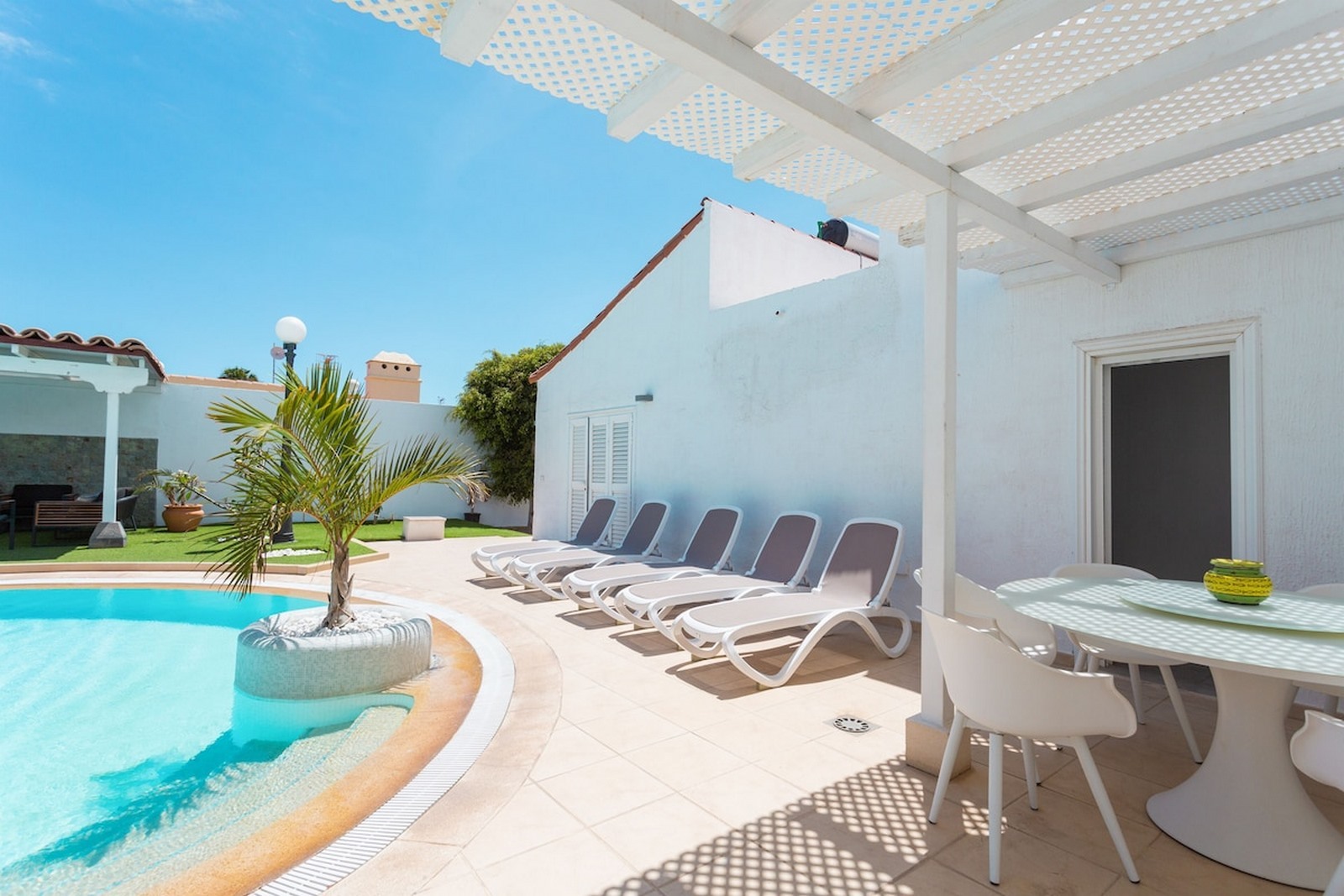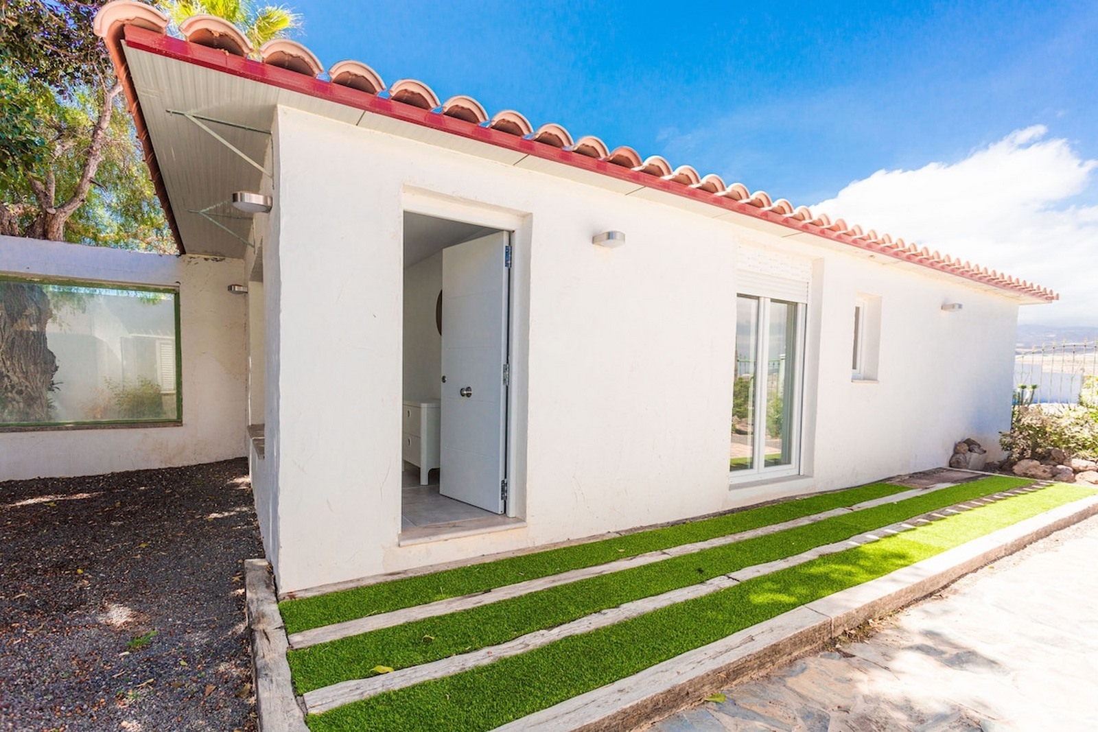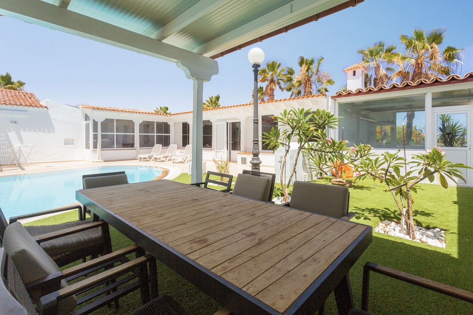 Wrapping around the villa are its extensive and well landscaped gardens. There is a synthetic lawn and BBQ area and a large seating area underneath a pergola should you want some shade. The villa is secluded and private.