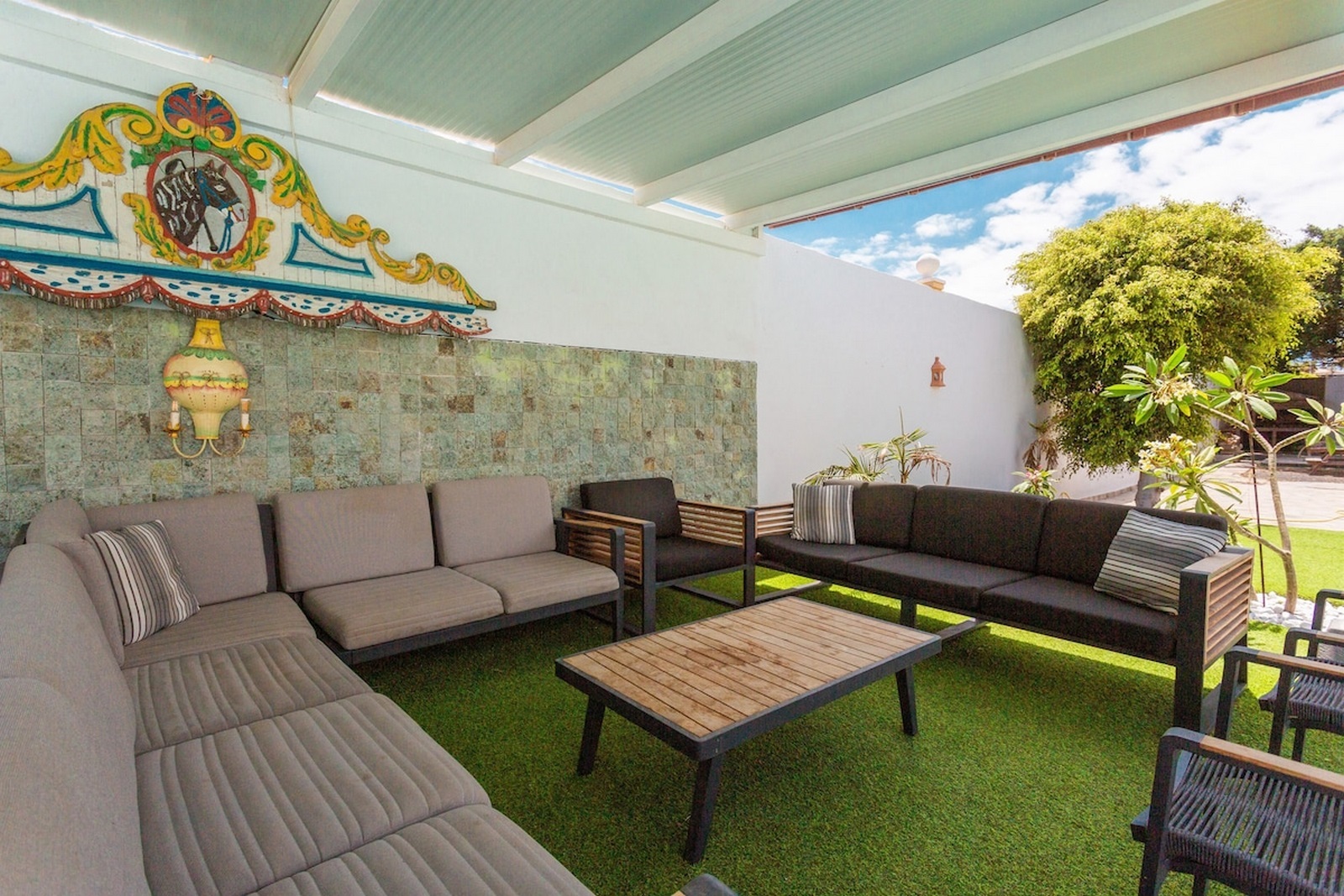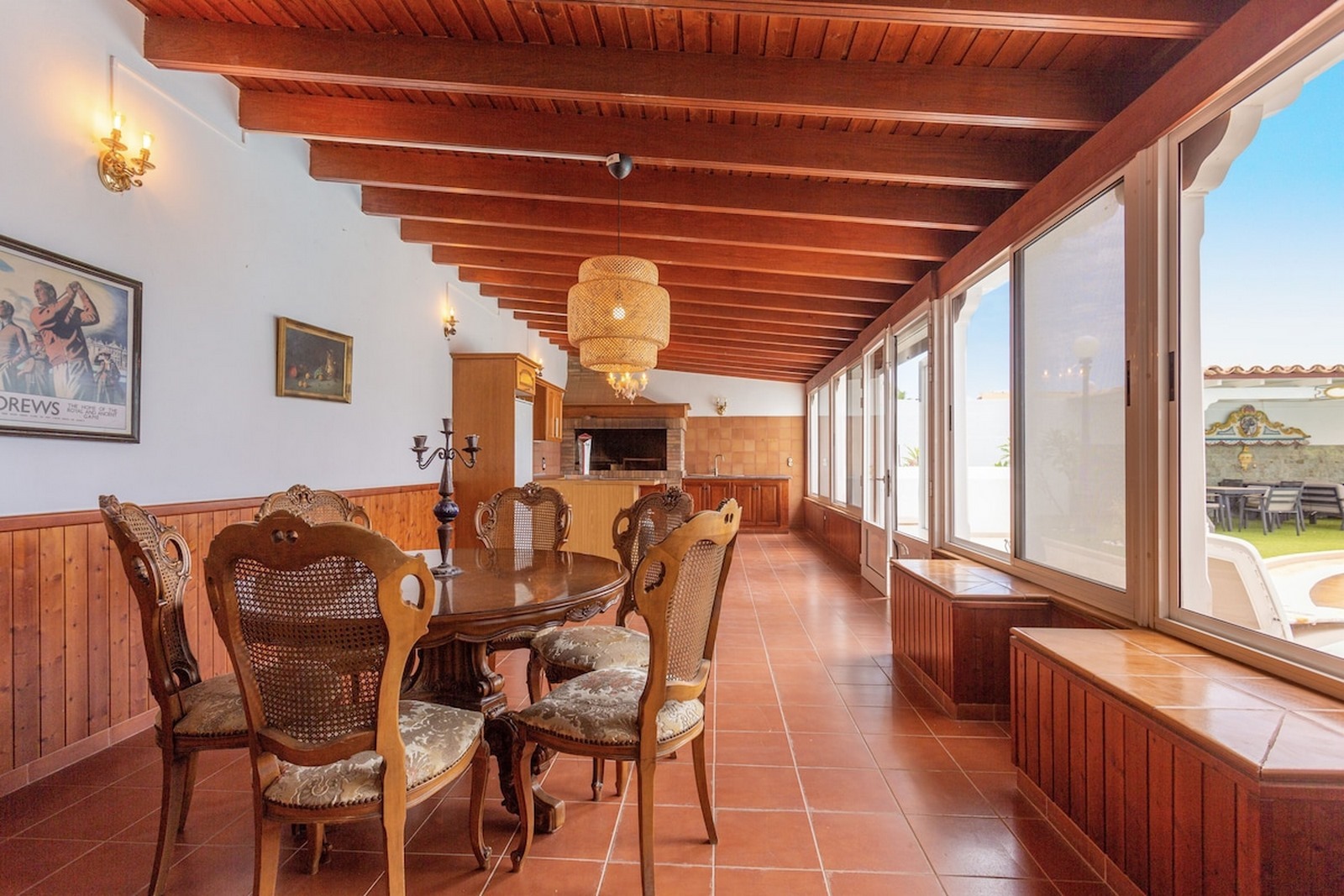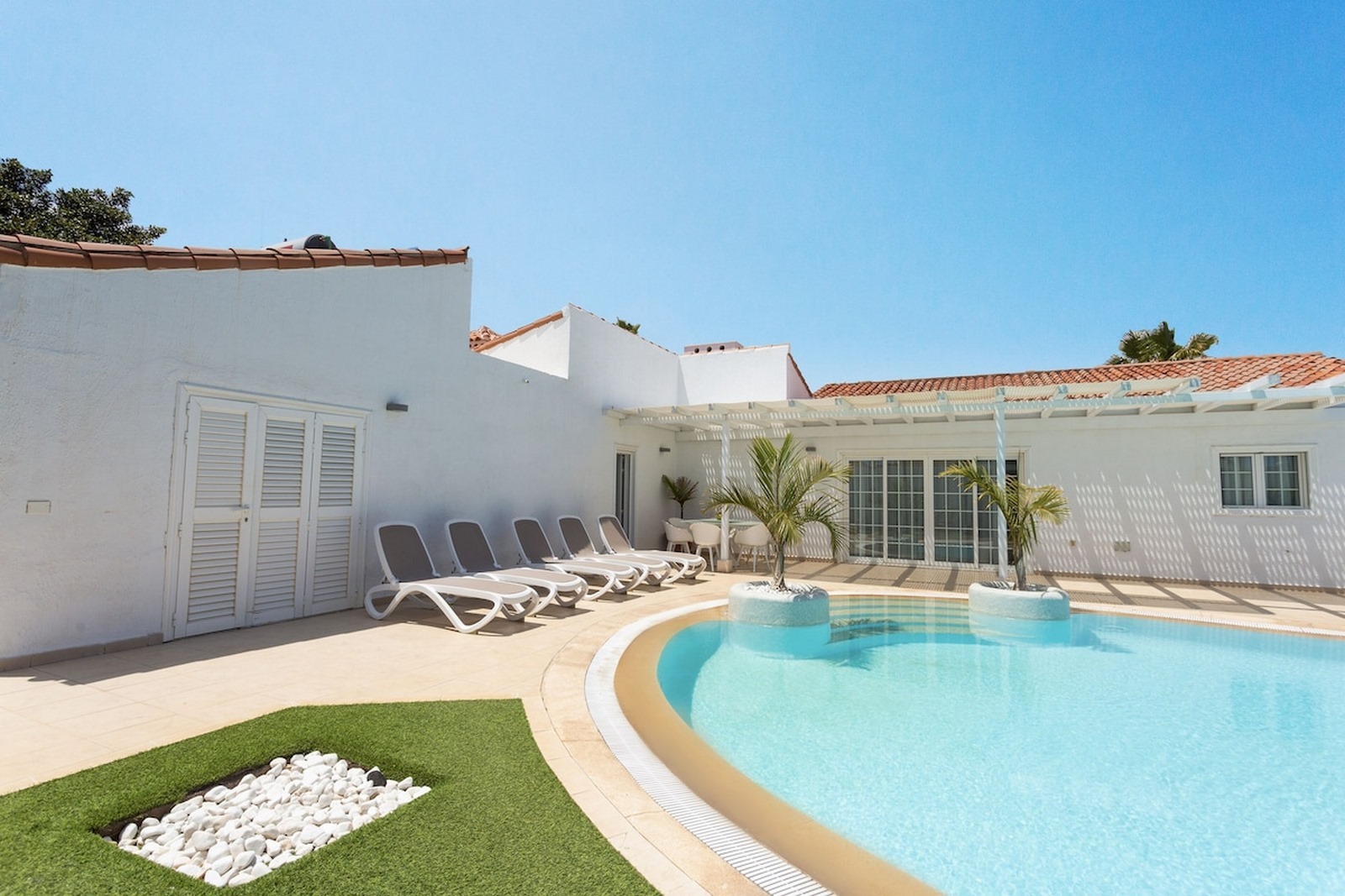 Wrapping around the villa are its extensive and well landscaped gardens. There is a synthetic lawn and BBQ area and a large seating area underneath a pergola should you want some shade. The villa is secluded and private.