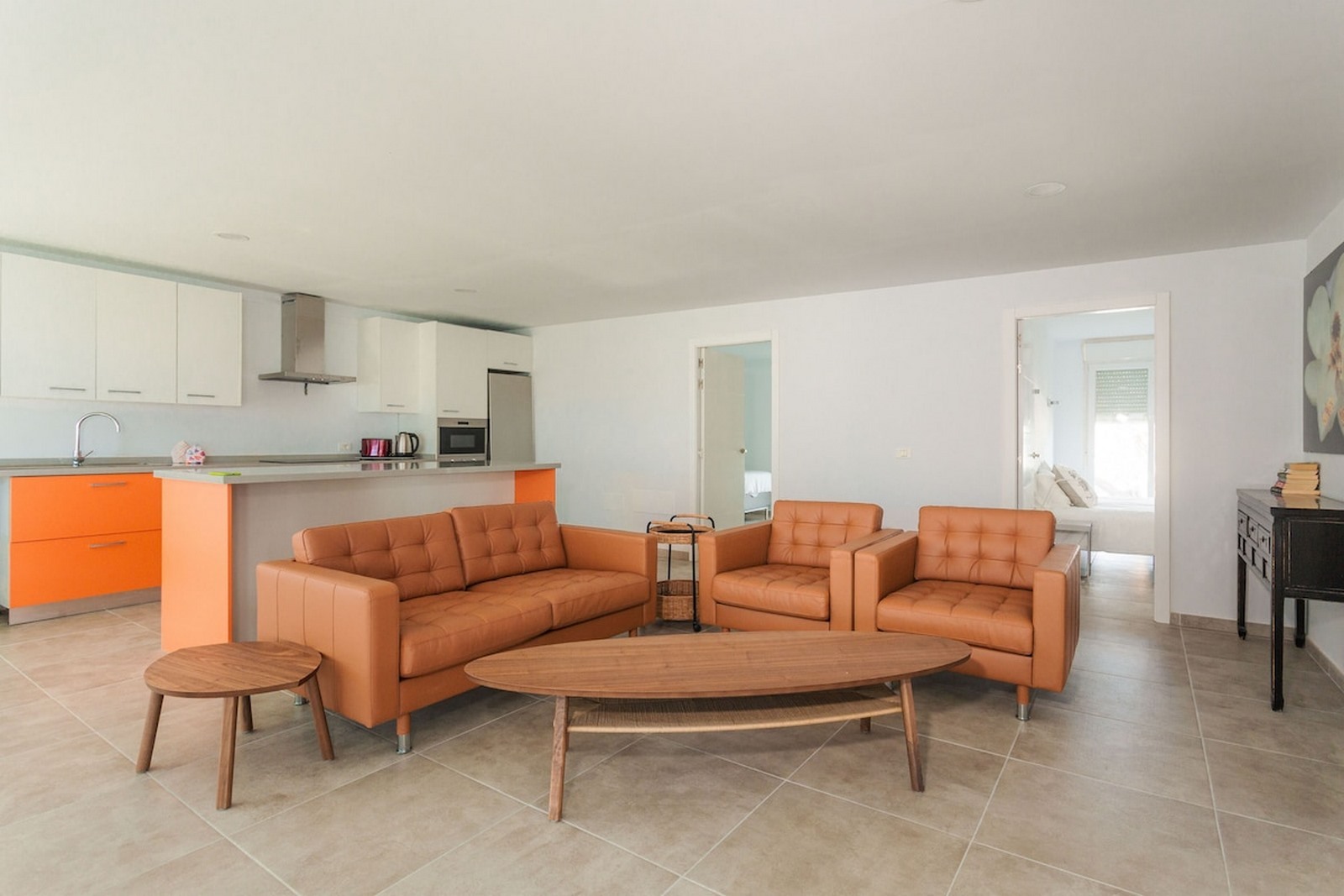 Large living and kitchen area.