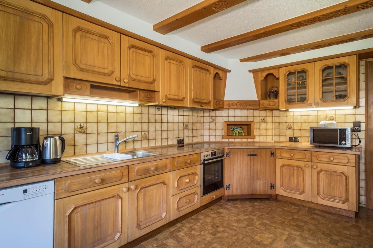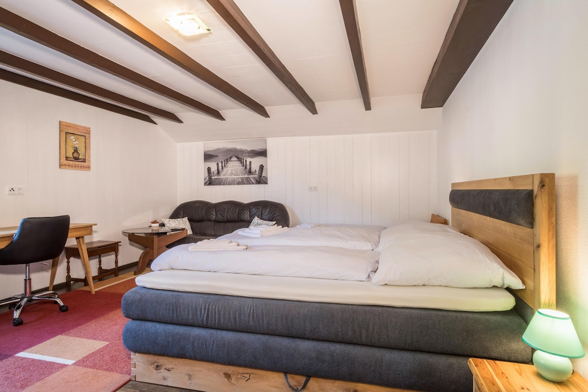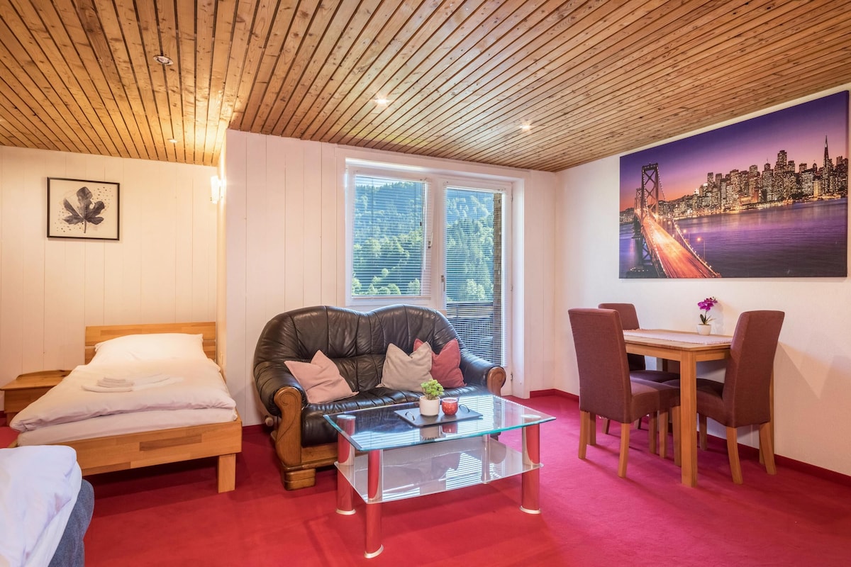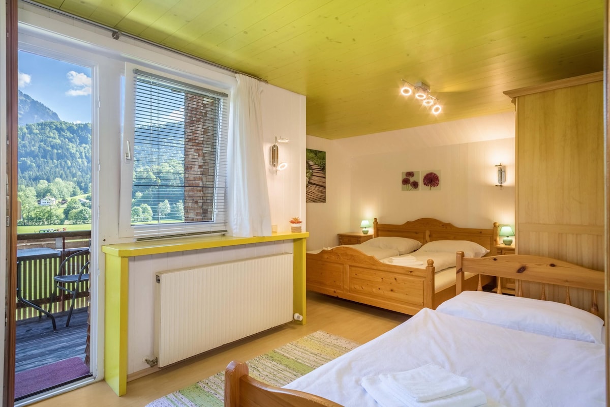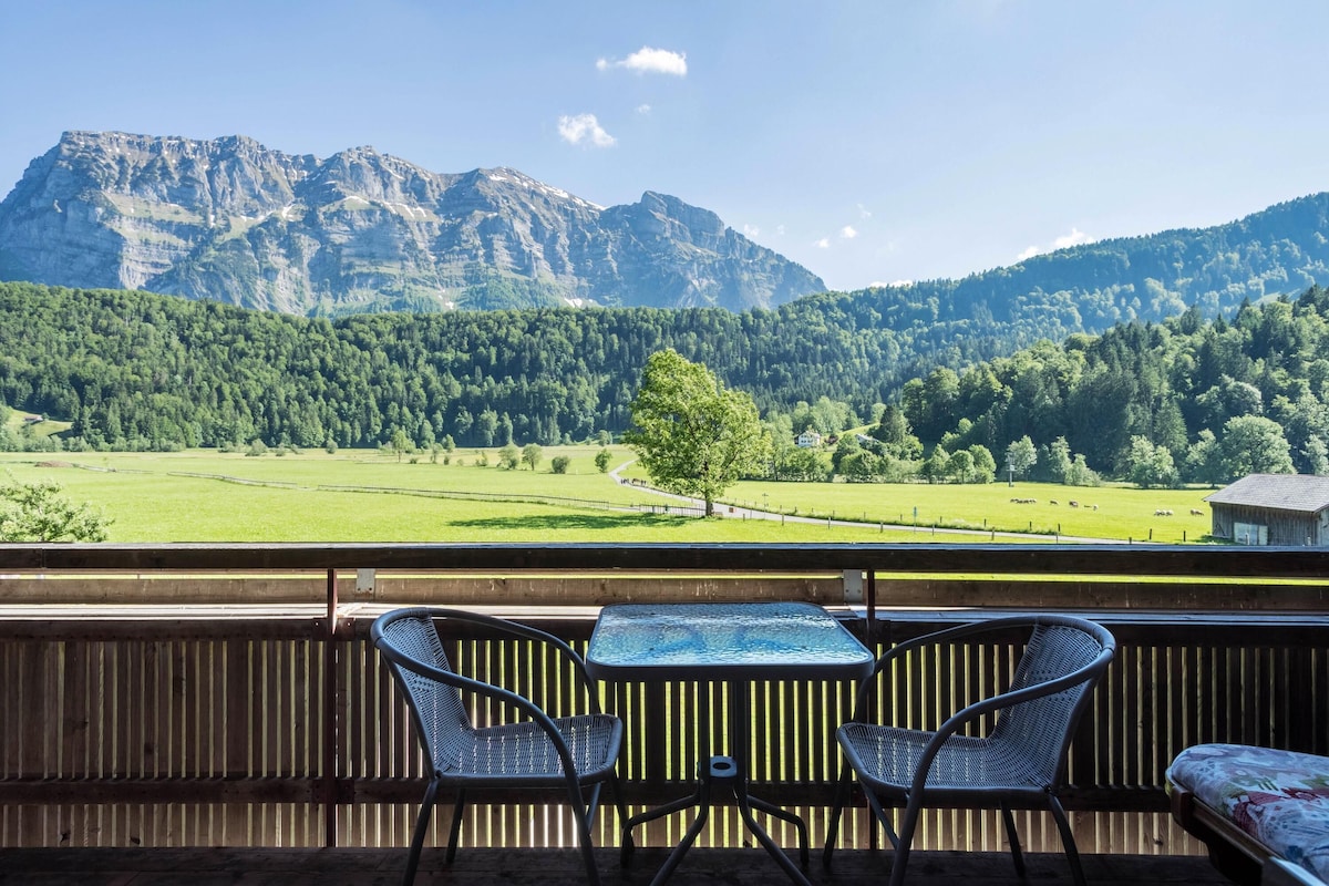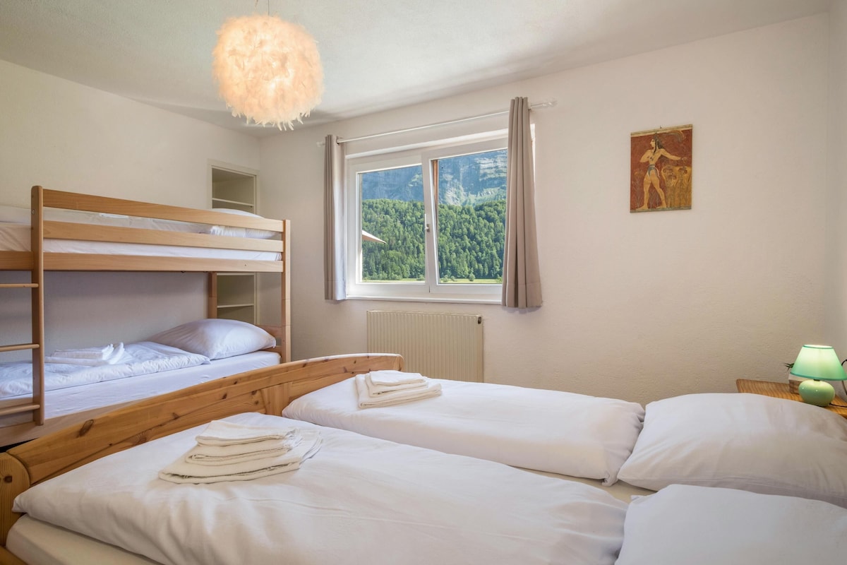 The modern and cozy vacation home Leonardo with a magnificent view of the mountains is located in Bizau, a small village in the mountain region near Bregenz and Lake Constance, and is ideal for a vacation in the Alps with the whole family or with groups of friends. The 200 m² vacation home with wood-burning stove consists of a living room, a very well-equipped kitchen with dishwasher, 4 bedrooms (3 with an extra single bed each and one with a single bed and a bunk bed for 2 people) as well as 2 bathrooms and a guest toilet, thus accommodating 12 people. Amenities also include Wi-Fi, a washing machine, cable TV, a crib and a high chair (both available upon request). Start your day with a coffee on the balcony and enjoy the magnificent direct view of the mountain ridges. The private outdoor area features a lush and well-kept communal garden, as well as an open terrace where you can enjoy delicious meals from the grill in the evenings. In addition, the outdoor location is a paradise for children. Your loved ones can play in the large children’s playground, which has, among other things, a slide, swings and 2 cottages with a connecting bridge. A bus stop is a 4-minute walk away (350 m), a supermarket is 450 m away (5-minute walk), and in Bezau you will find restaurants, stores, a bakery and a pharmacy after a 10-minute drive (5.5 km). From the house you have direct access to a great cross-country ski trail, and several nearby ski lifts can be reached after only 6-12 minutes by car (2-8 km). The charming city of Bregenz on the famous Lake Constance is only 45 minutes by car or 40 km from the house. Within an hour’s drive (45-50 km) you can also visit Liechtenstein and Switzerland.