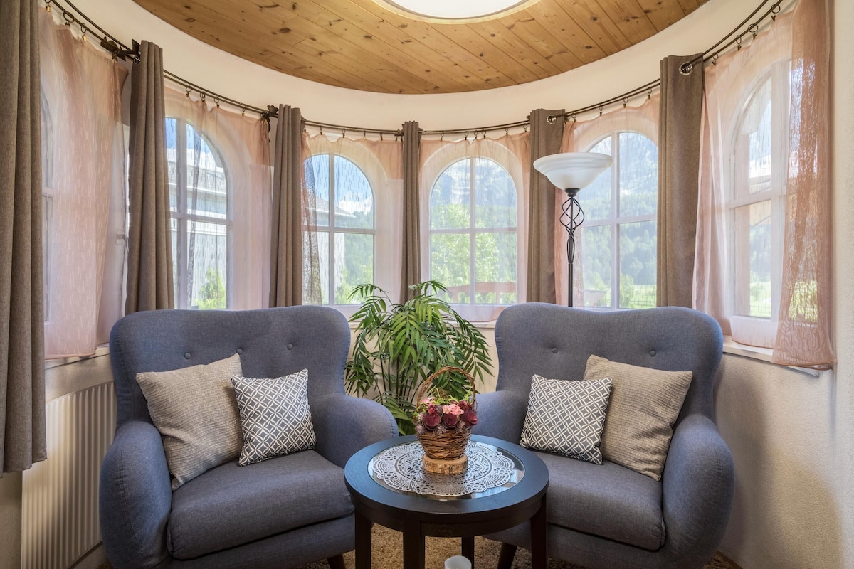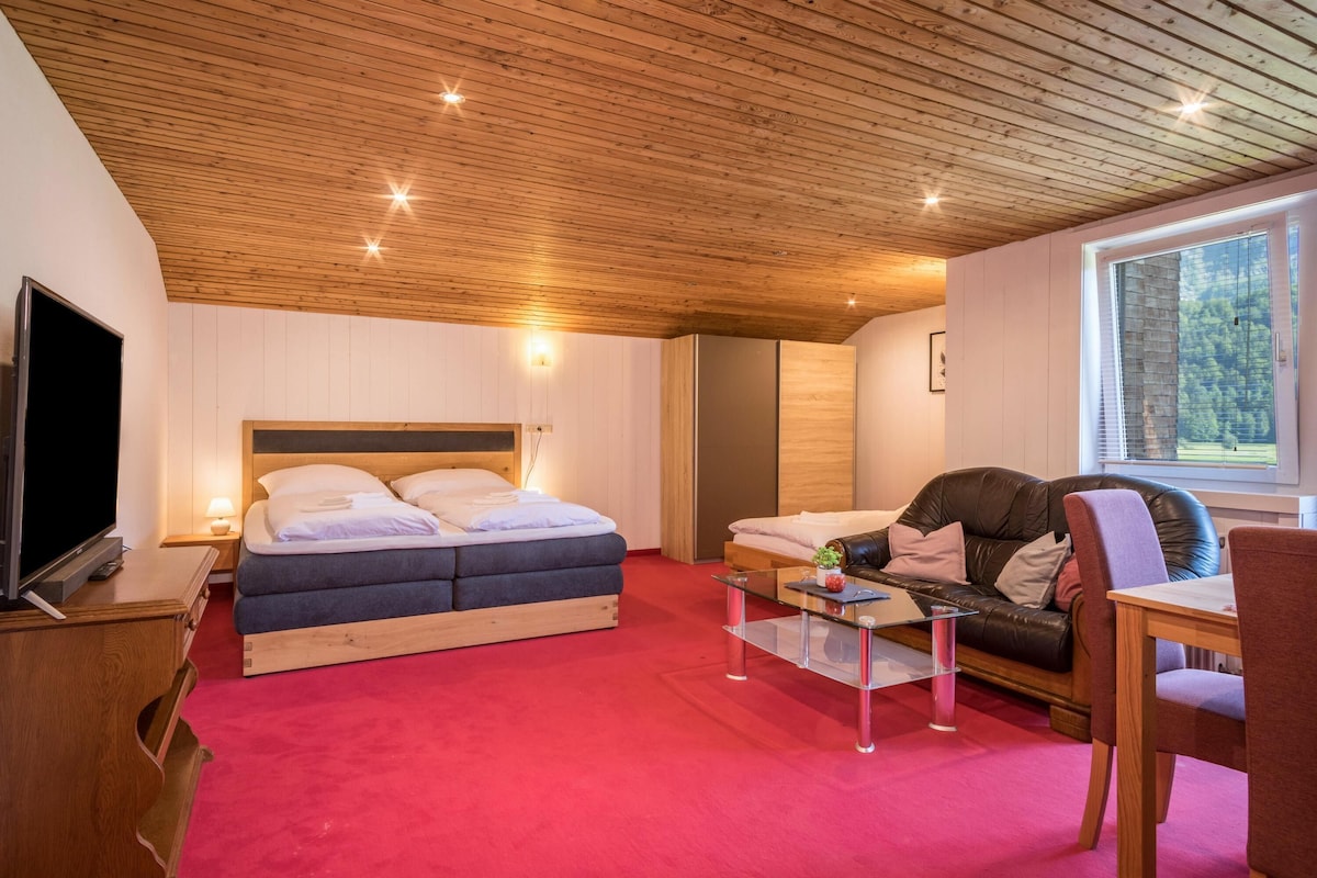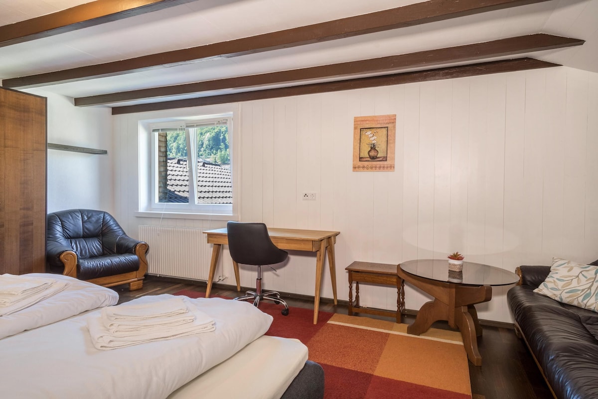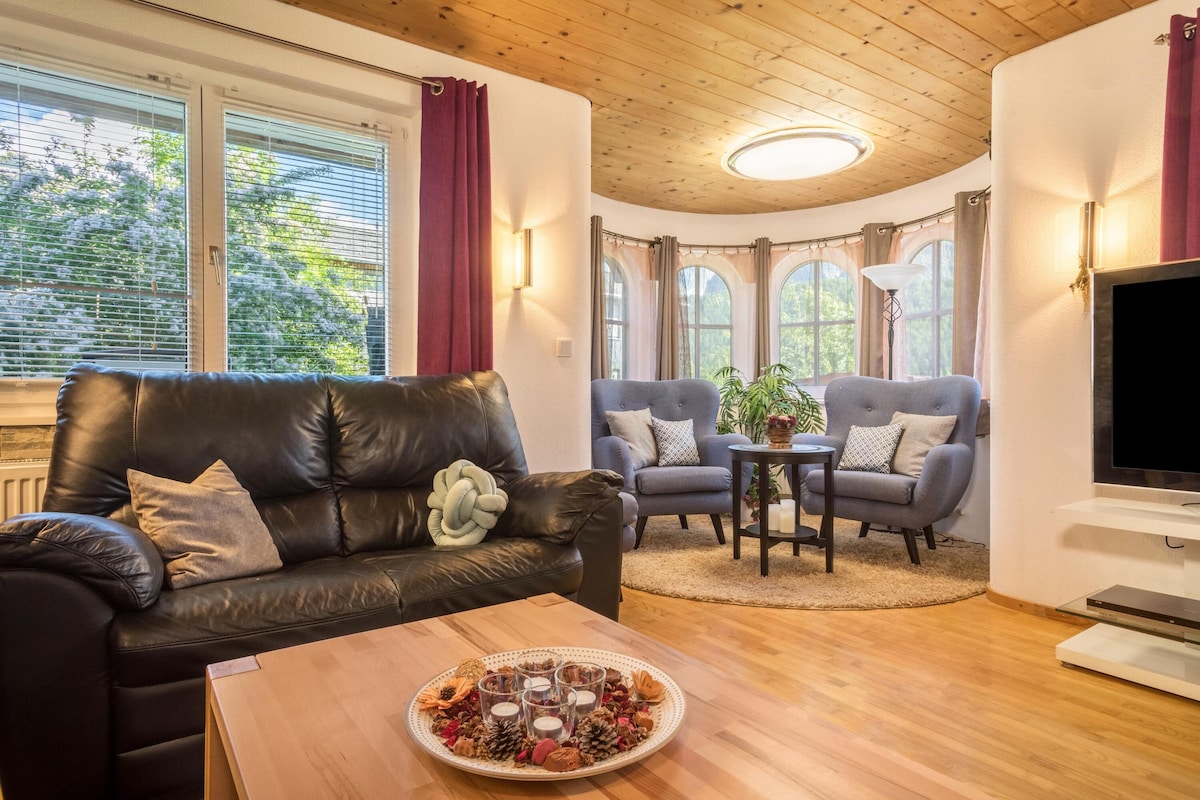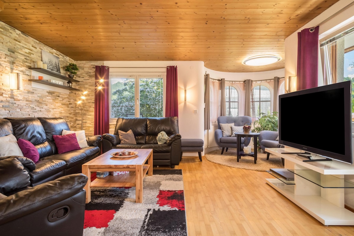 The modern and cozy vacation home Leonardo with a magnificent view of the mountains is located in Bizau, a small village in the mountain region near Bregenz and Lake Constance, and is ideal for a vacation in the Alps with the whole family or with groups of friends. The 200 m² vacation home with wood-burning stove consists of a living room, a very well-equipped kitchen with dishwasher, 4 bedrooms (3 with an extra single bed each and one with a single bed and a bunk bed for 2 people) as well as 2 bathrooms and a guest toilet, thus accommodating 12 people. Amenities also include Wi-Fi, a washing machine, cable TV, a crib and a high chair (both available upon request). Start your day with a coffee on the balcony and enjoy the magnificent direct view of the mountain ridges. The private outdoor area features a lush and well-kept communal garden, as well as an open terrace where you can enjoy delicious meals from the grill in the evenings. In addition, the outdoor location is a paradise for children. Your loved ones can play in the large children’s playground, which has, among other things, a slide, swings and 2 cottages with a connecting bridge. A bus stop is a 4-minute walk away (350 m), a supermarket is 450 m away (5-minute walk), and in Bezau you will find restaurants, stores, a bakery and a pharmacy after a 10-minute drive (5.5 km). From the house you have direct access to a great cross-country ski trail, and several nearby ski lifts can be reached after only 6-12 minutes by car (2-8 km). The charming city of Bregenz on the famous Lake Constance is only 45 minutes by car or 40 km from the house. Within an hour’s drive (45-50 km) you can also visit Liechtenstein and Switzerland.