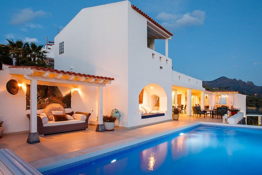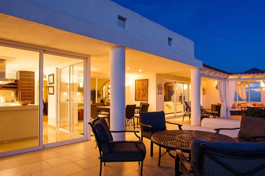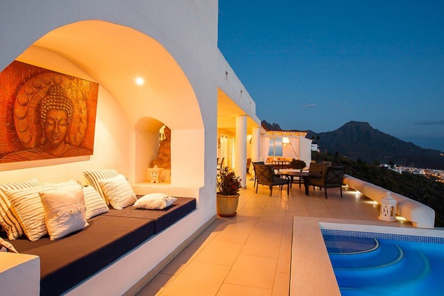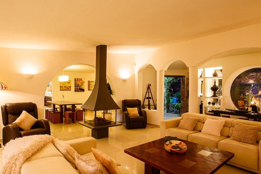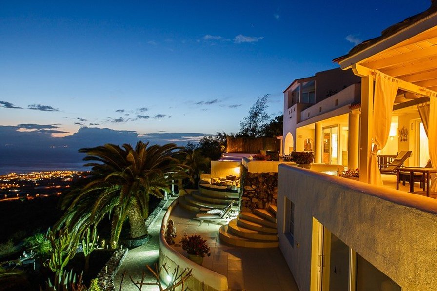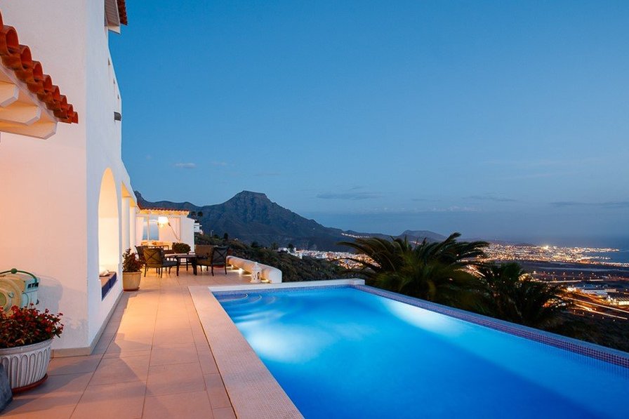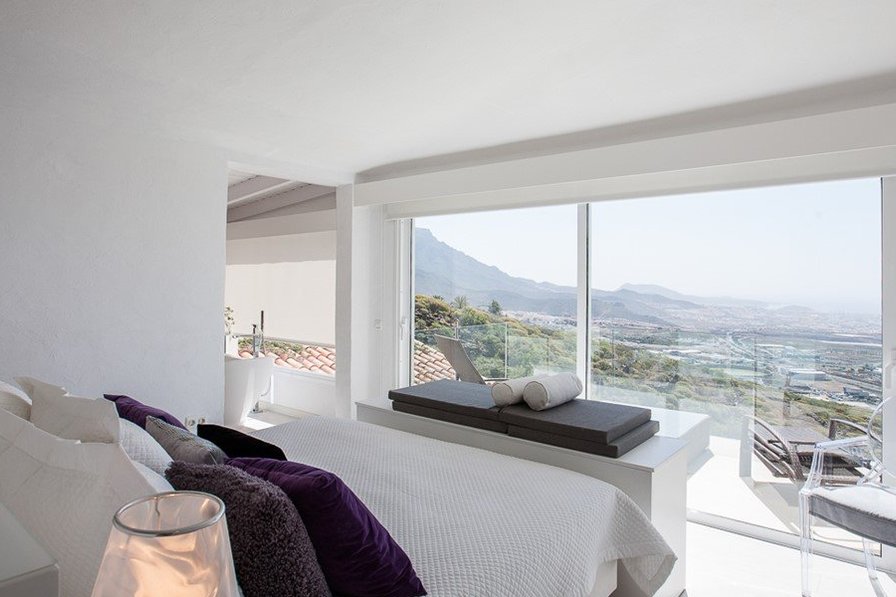 The First Level, which is approached via the Main Front Door, opens into a Sumptuous double-width, open plan Lounging Area. This room leads into a Separate Dining Area and then acesses the very modern, fully fitted Kitchen with separate Utility. All these rooms are south facing and with the glass doors and panels, the uninterrupted views over Costa Adeje are Simply Stunning. Infact, you can see as far as Las Americas to the left and Calleo Savaje to the right!
