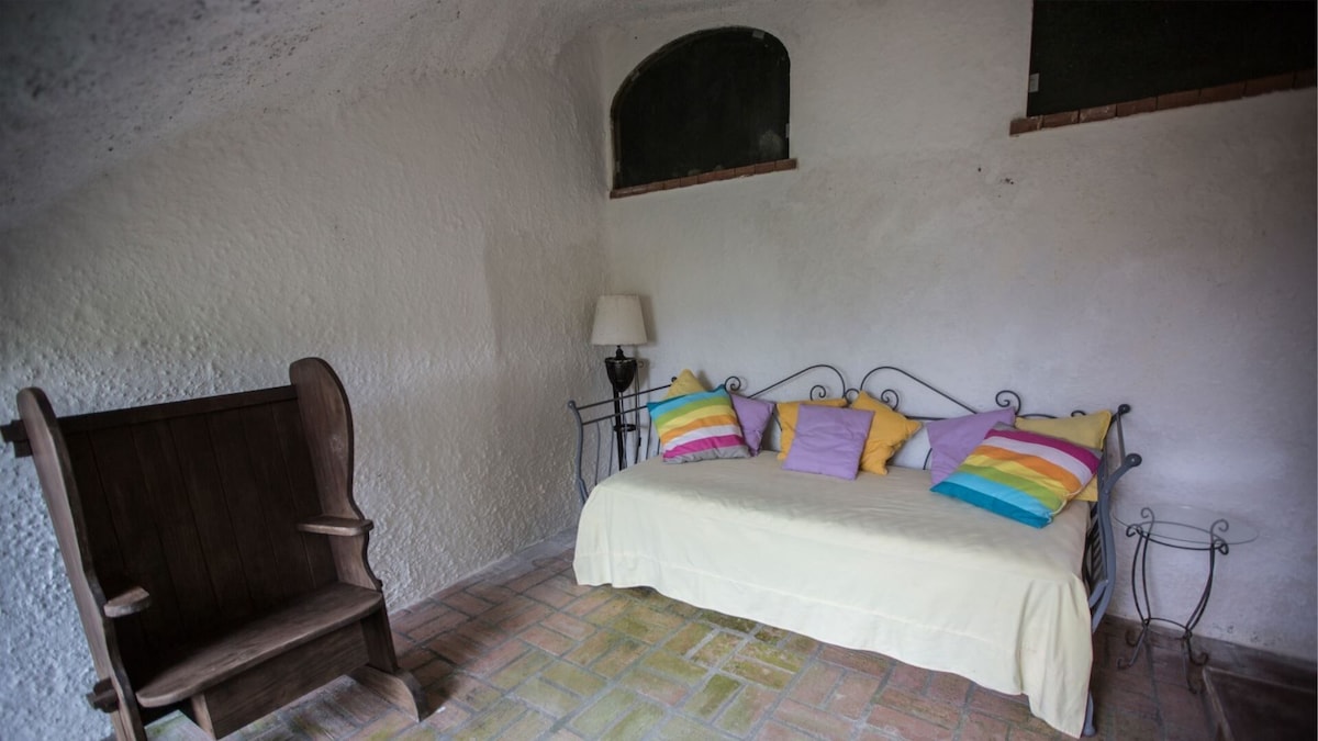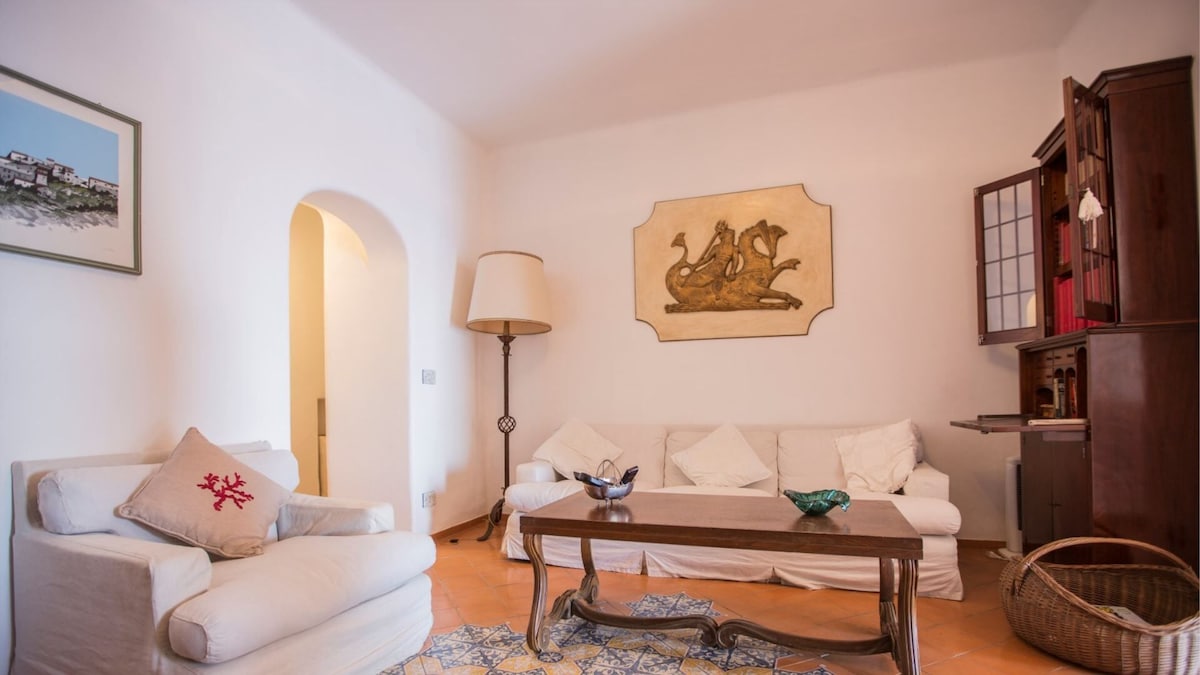 The lower level of the Villa Luisa hosts a small equipped terrace with a studio apartment provided with a double bed sofa, kitchen module (fridge, 2 electric stoves) and bathroom (shower, basin, and toilet).
