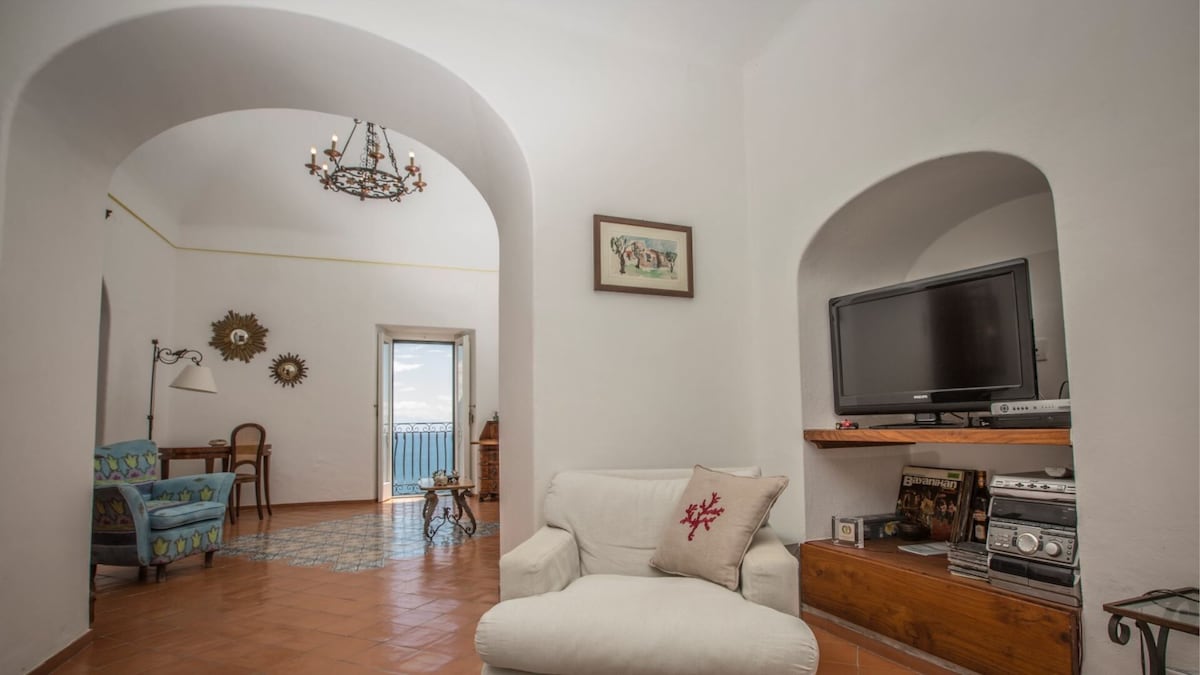 The upper floor of the Villa Luisa consists of three levels and opens itself on a very panoramic, equipped terrace of about 70 square meters, provided with brickwork benches, wicker sofas and a barbecue.