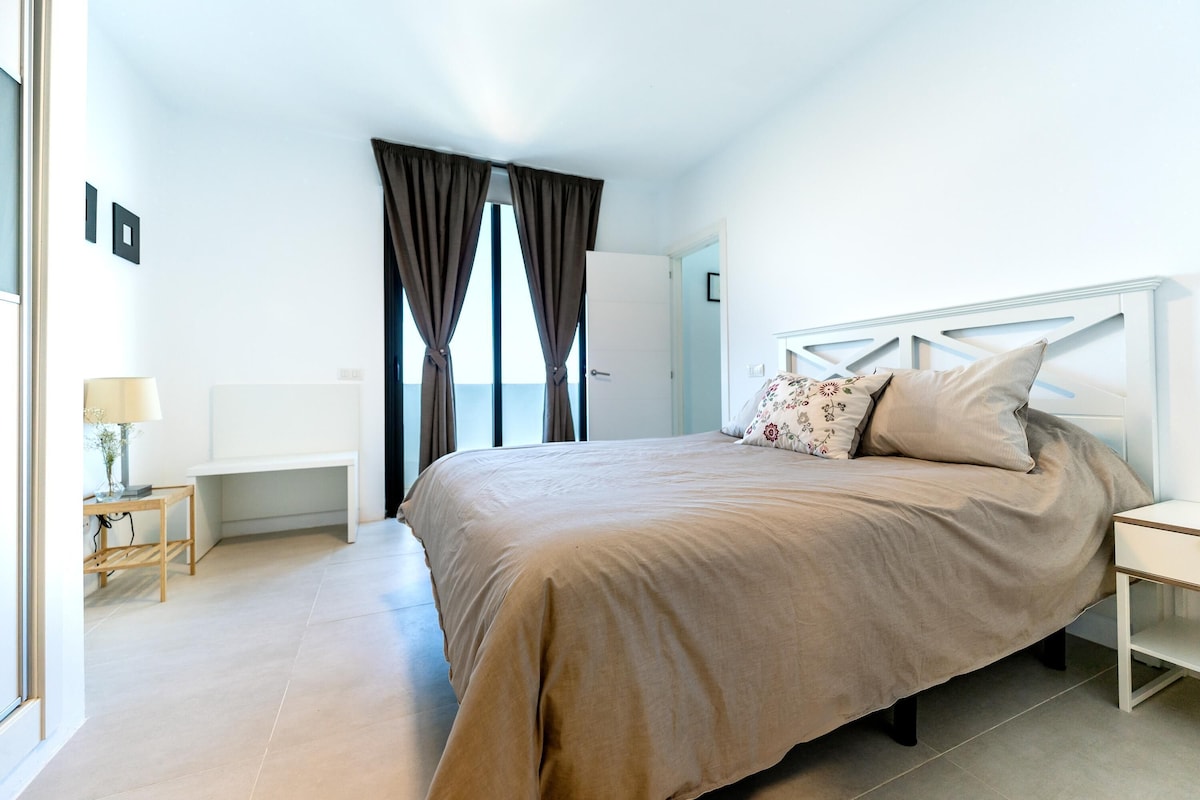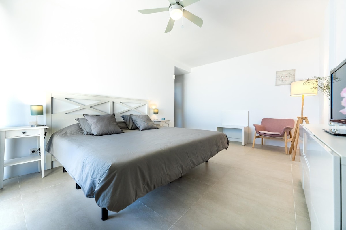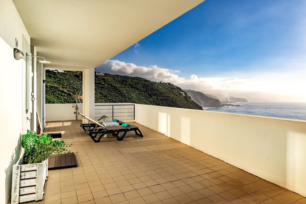Directly on the hillside overlooking the sea, the modern Villa Maria welcomes you in the municipality of Tacoronte on the northeast coast of Tenerife. The comfortable vacation home extends over three levels and consists of a living room, a well-equipped kitchen with dishwasher, 3 bedrooms as well as 3 bathrooms (one of them en suite) and can therefore accommodate 6 people (2 additional children can be accommodated for an extra fee).