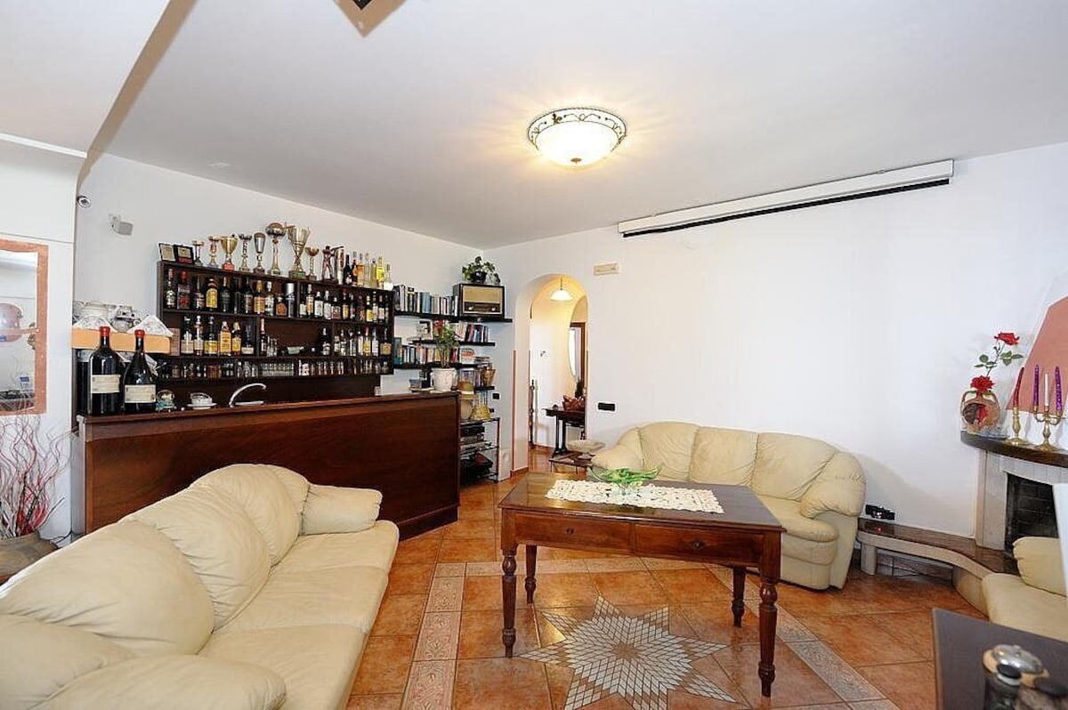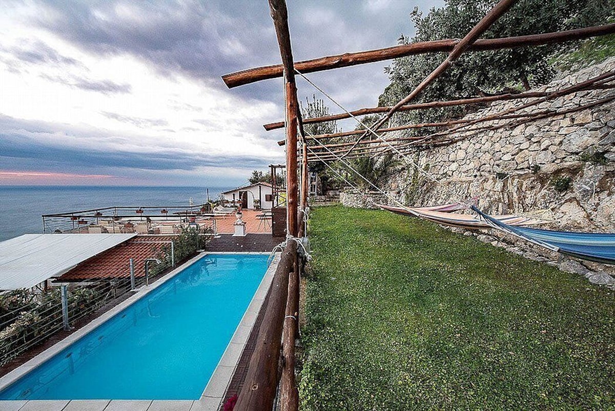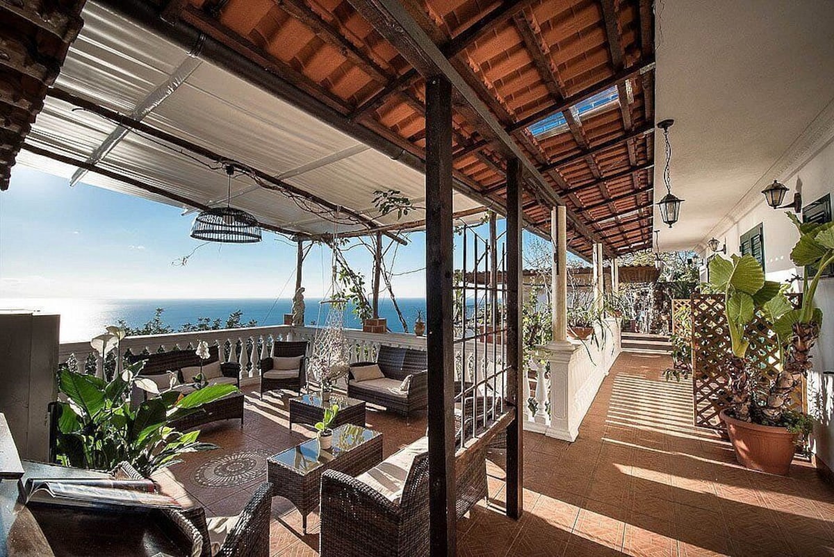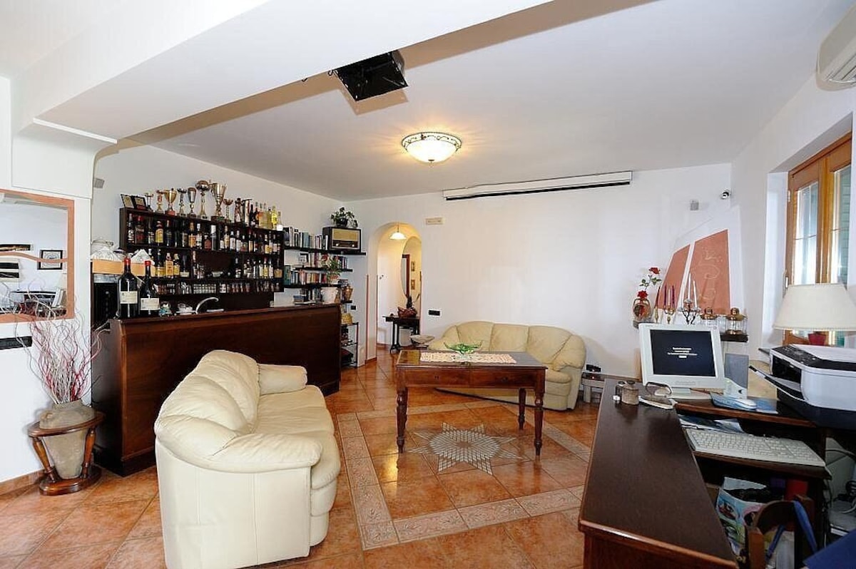 The second living room is paved with tiles with handmade decoration, in the characteristic style of the Amalfi Coast. The ceiling is sloped and has characteristic exposed wood beams. The furnishings are warm and welcoming. The furnishings include two single divan beds. The room has three windows with a view of the sea and of the coastline. It is equipped with an air conditioning/heating unit.