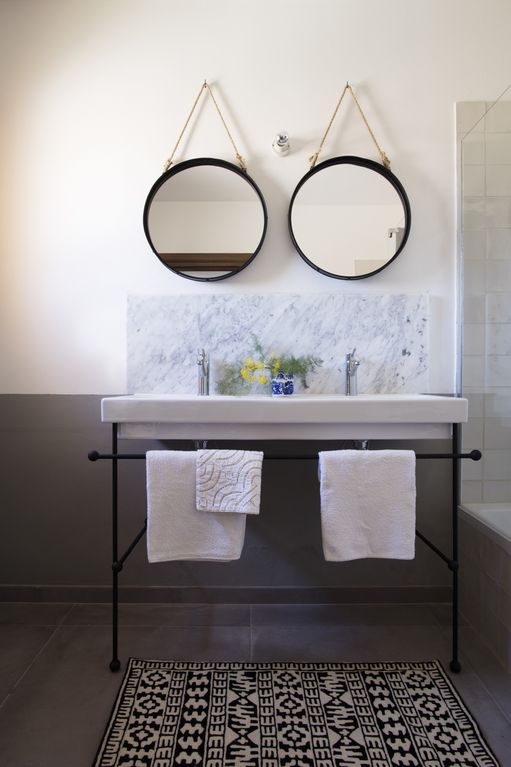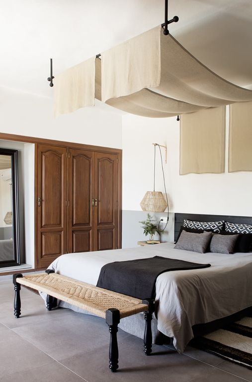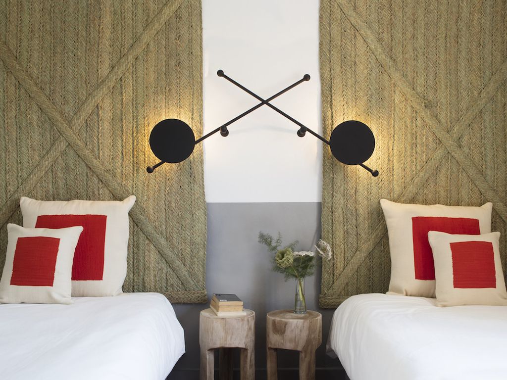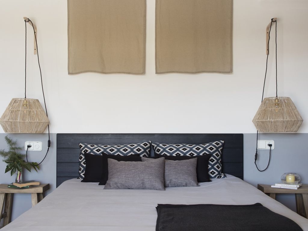On the upper level a further three bedrooms can be found (two twin and one double bedroom) and a bathroom with walk in shower enclosure is also present. The master bedroom is stunning in modern design and has it’s own en suite bathroom with his/her sinks, bath with shower, and WC. The patio doors can be opened onto a private terrace overlooking the swimming pool. Relax in the seating area here or rock yourself to sleep in the hammock.
