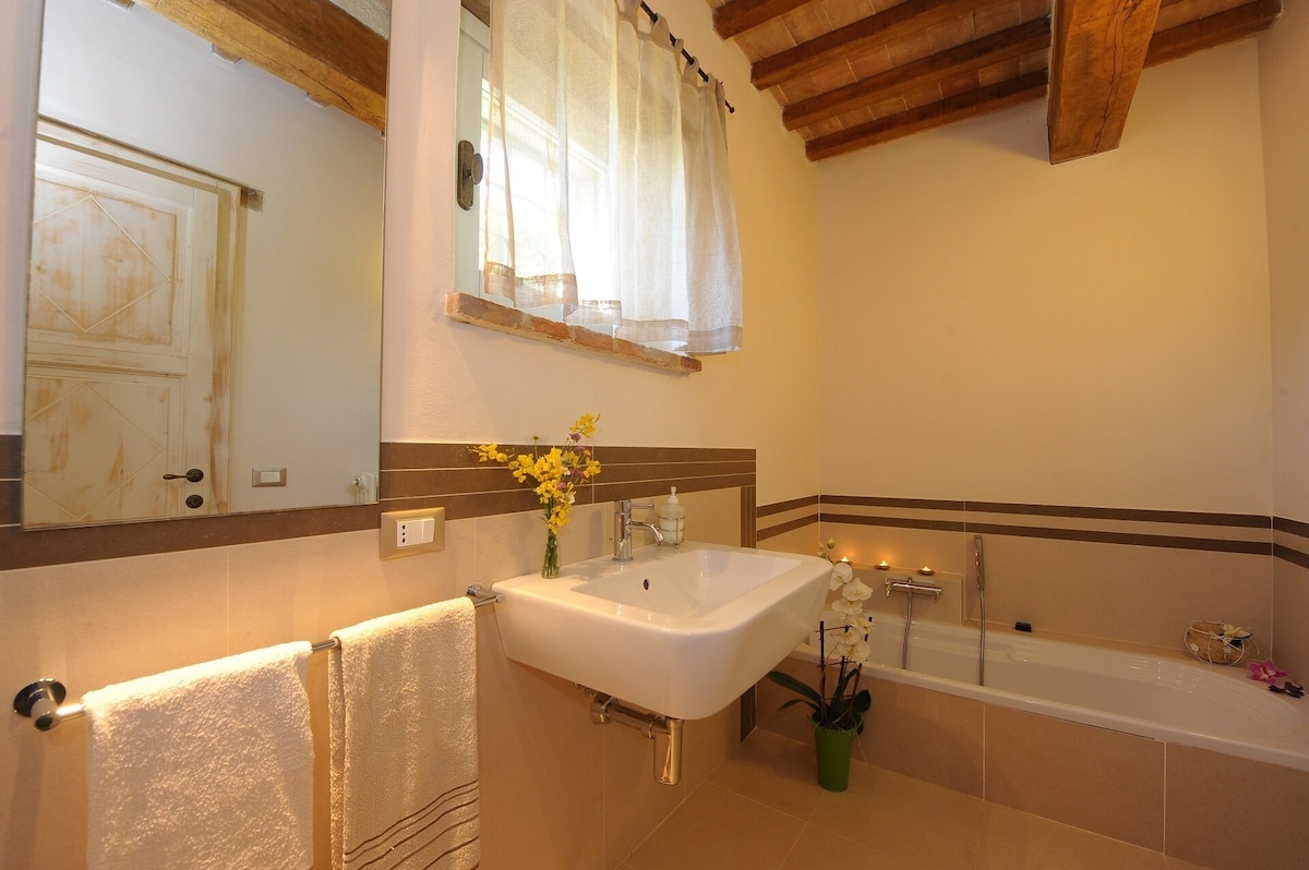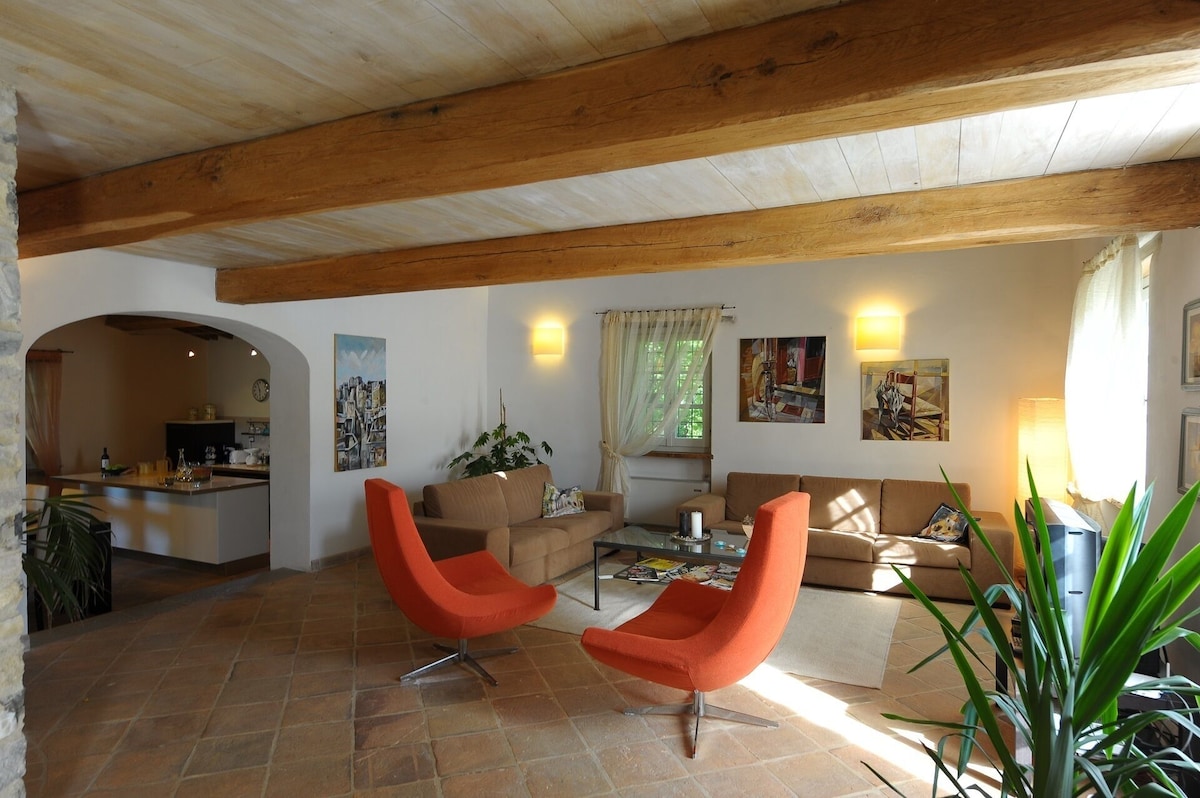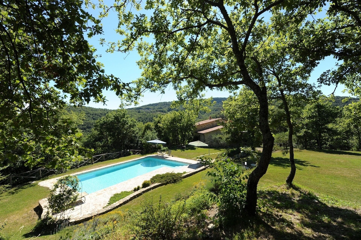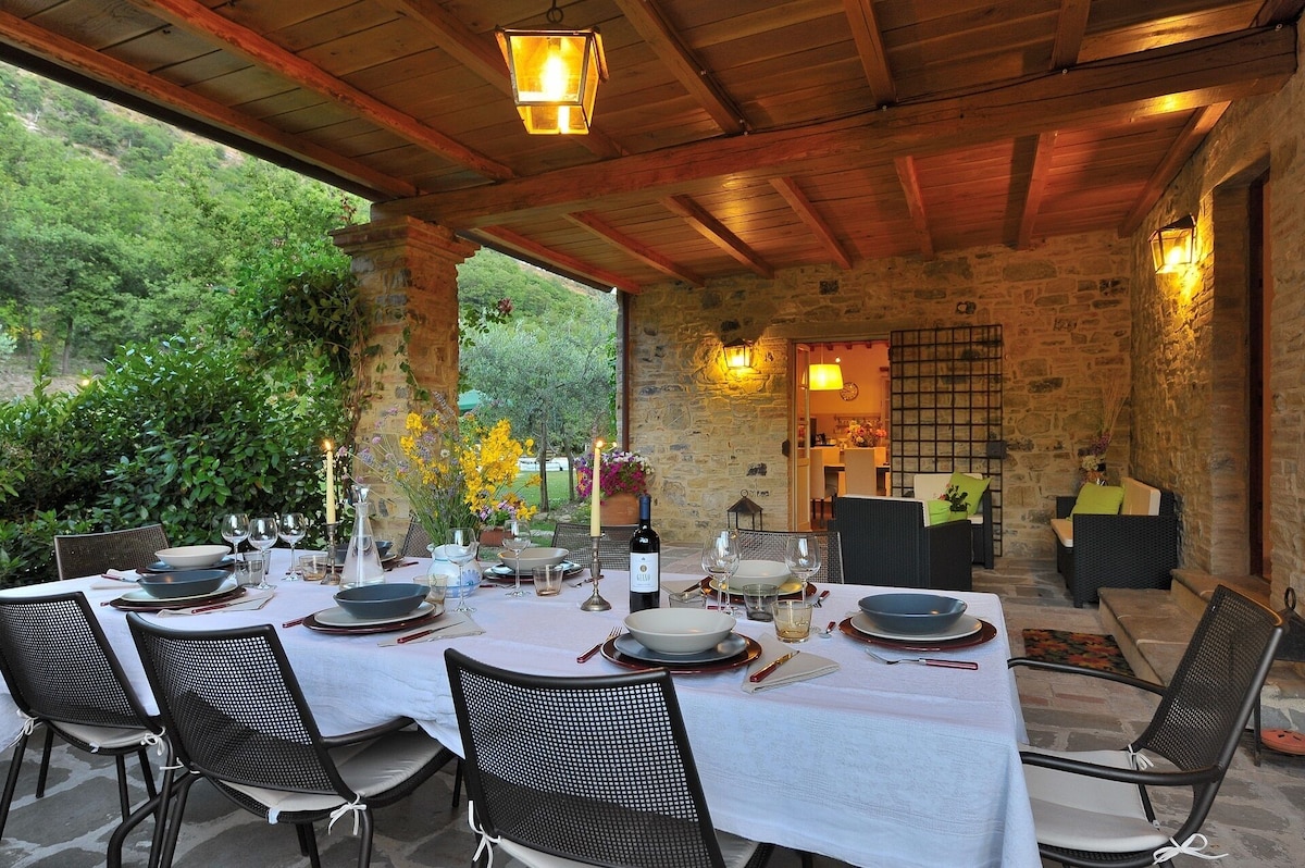 The garden, entirely cultivated with olive trees and oak trees, surrounds the villa and includes a patio with pergola for outdoor lunches and dinners and a barbecue area with oven.