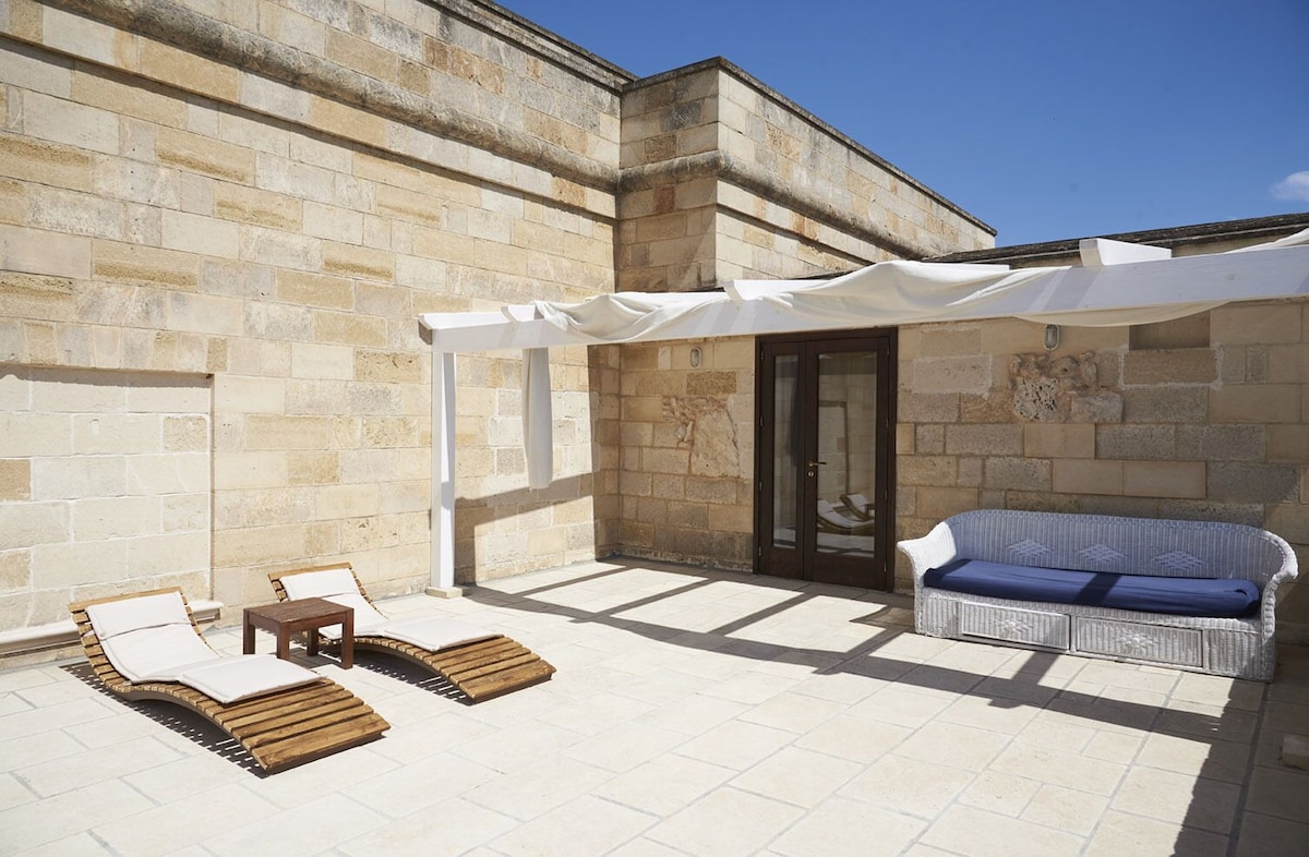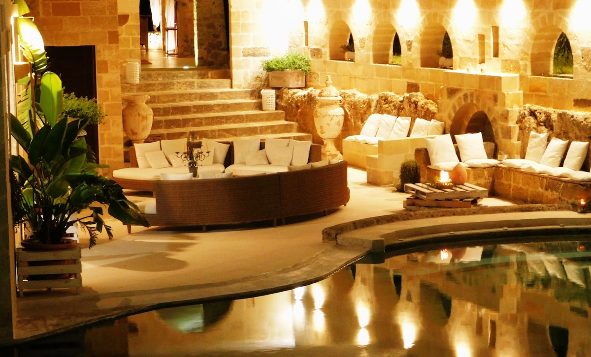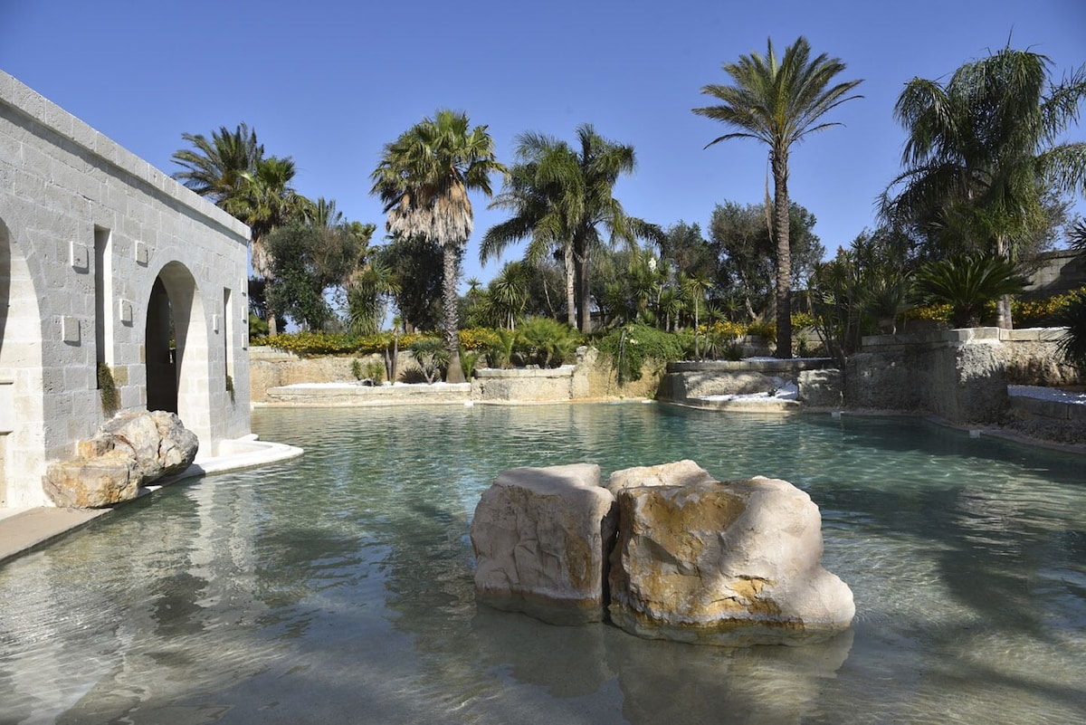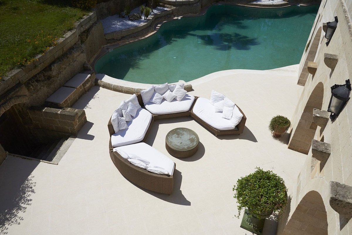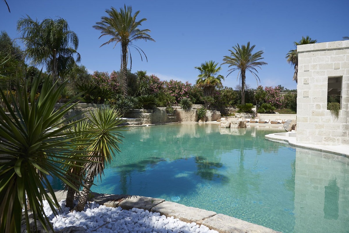 On the beautiful pool overlooking the two pool Suite, both with huge windows that let in the beautiful sunshine of Salento, just a short walk to the beach pool.