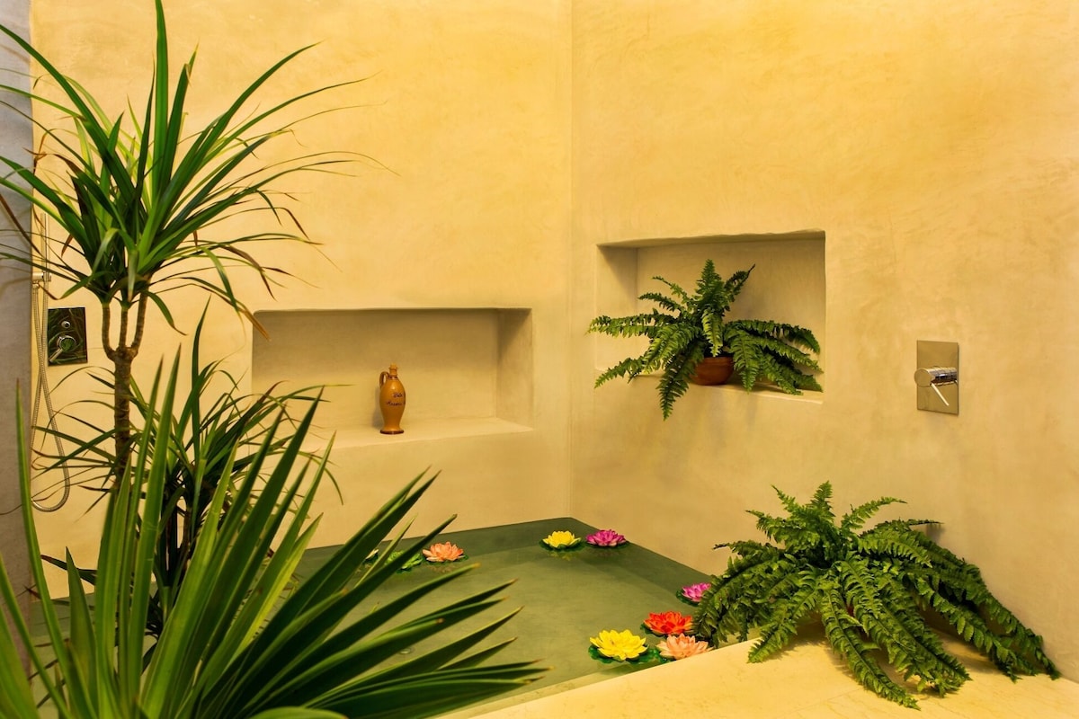 The first floor includes the superior room colors gold / blue, with stunning views over the spectacular swimming pool. It has an area of ​​about 70 square meters, simple and elegant, with a double bed, private bathroom with shower and large veranda exclusive, equipped with gazebos and sofas. The tones of the room are cobalt blue and gold, creating a refined and elegant.