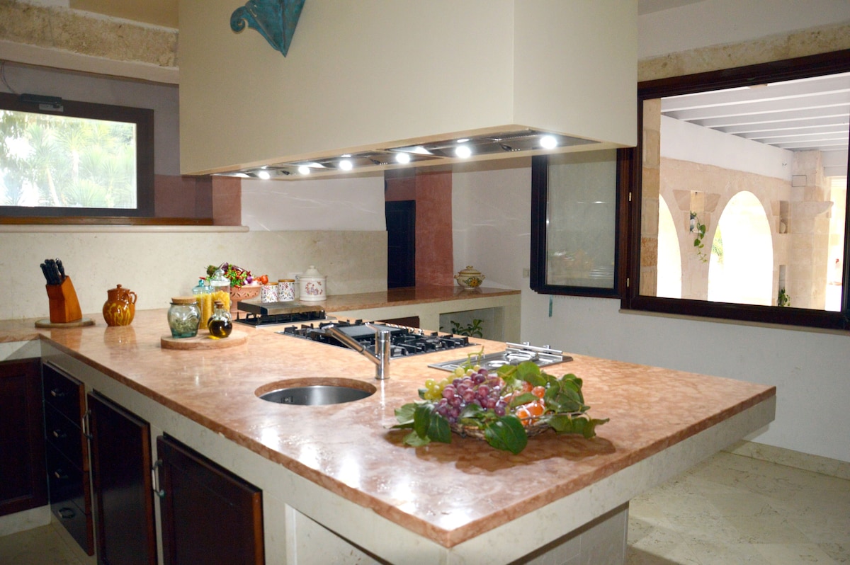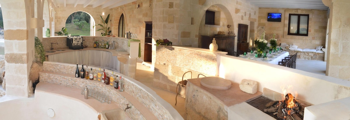 The farm overlooks the swimming pool surrounded by palm trees and is spread over three floors. It has 3 large suites and 2 superior rooms, all with independent entrance from the outside.