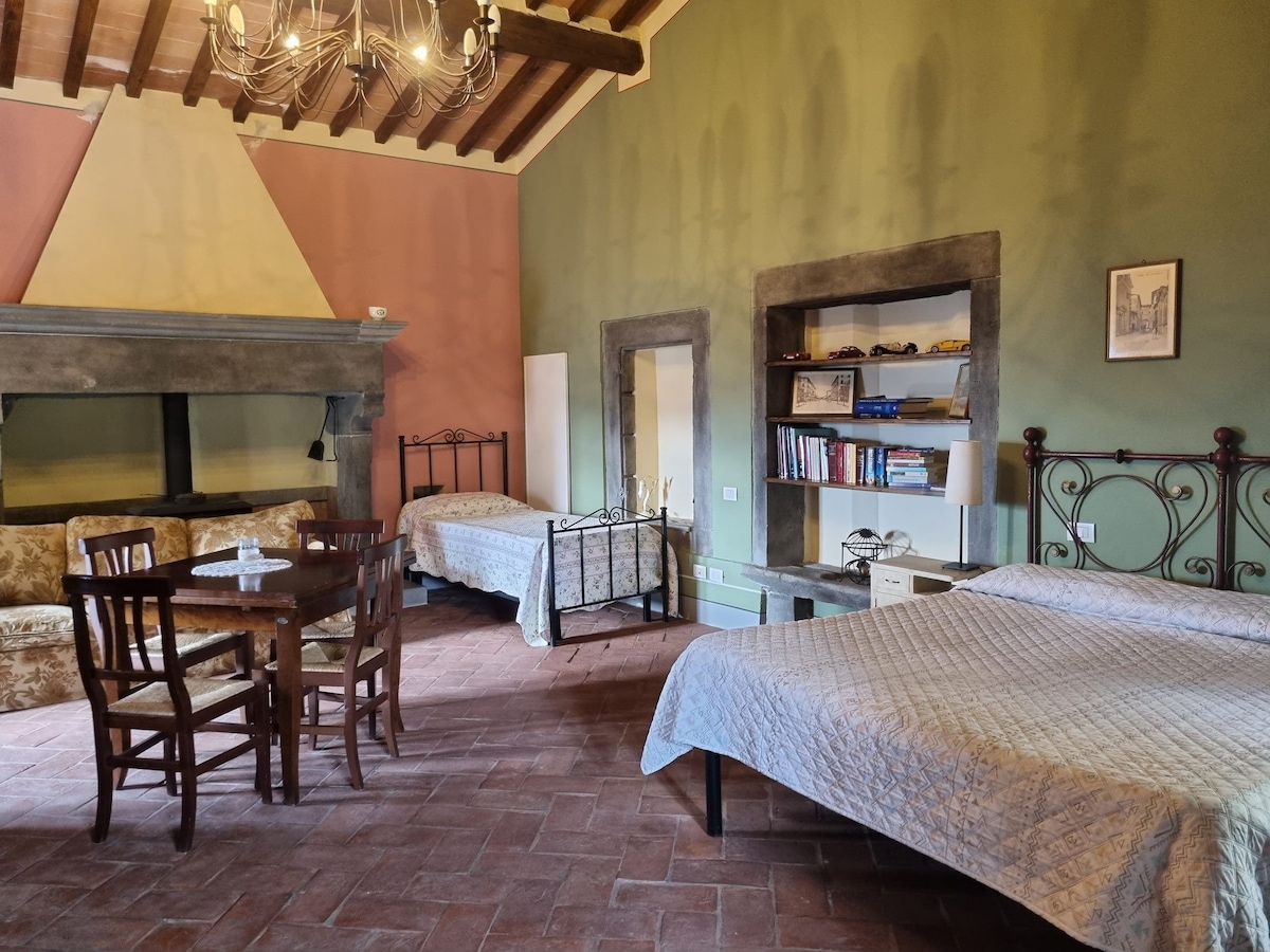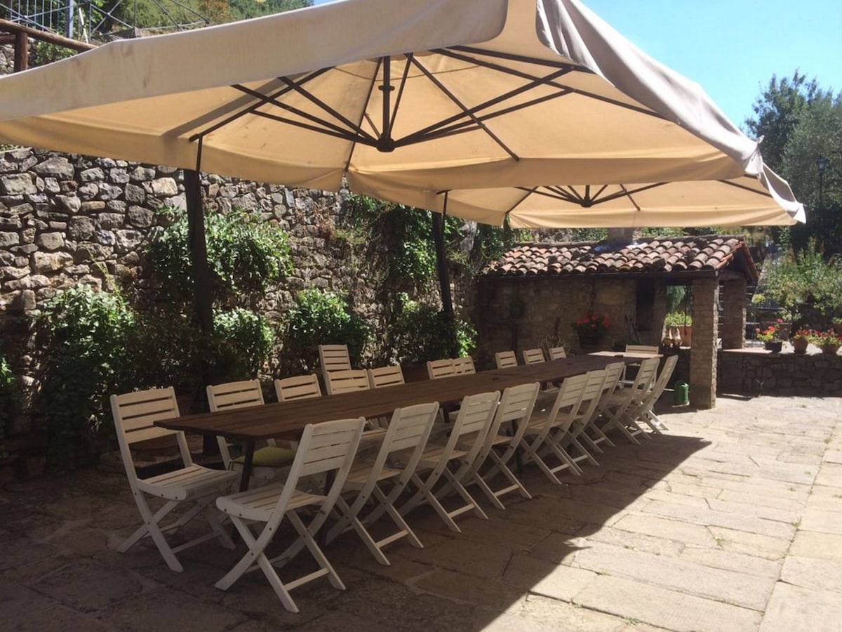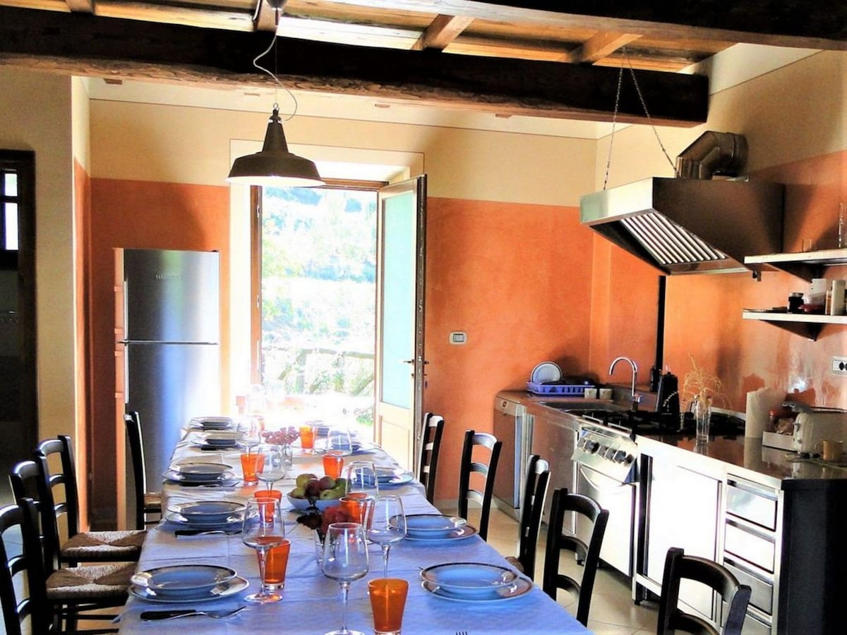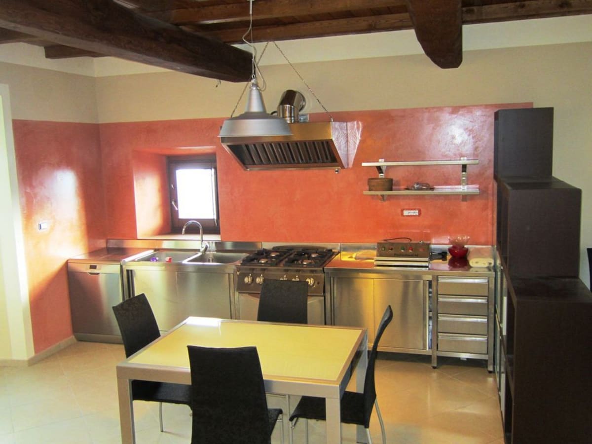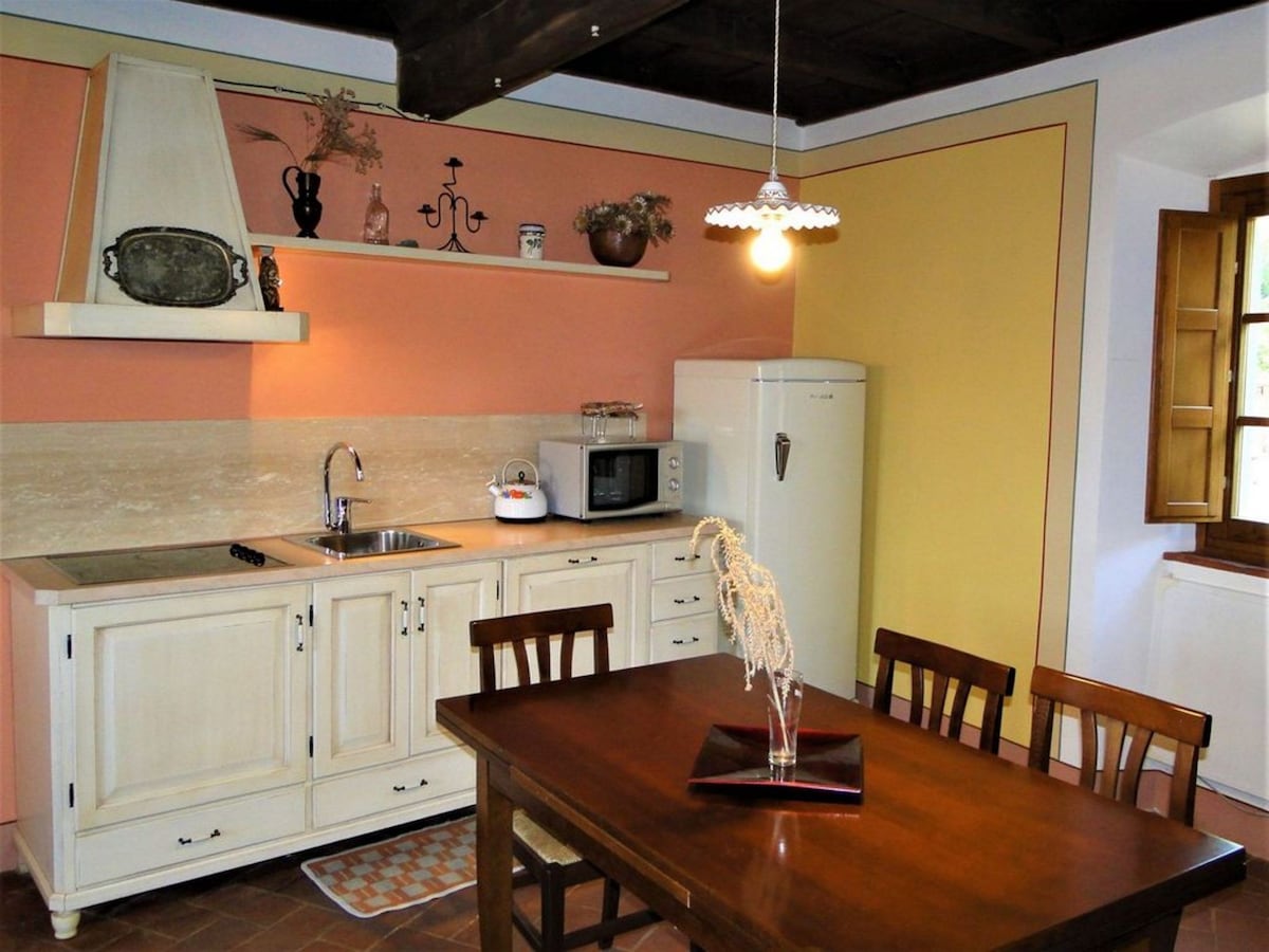 The kitchen is equipped with a four-burner gas cooker, a small electric oven, a refrigerator with freezer, a dishwasher, a microwave oven, an Italian-style coffee-maker, an American-style coffee-maker (bring your filters!) and a kettle. Here you will also find a washing machine (hidden in a cabinet), an iron and an ironing board. The kitchen has a window with a view of the patio.
