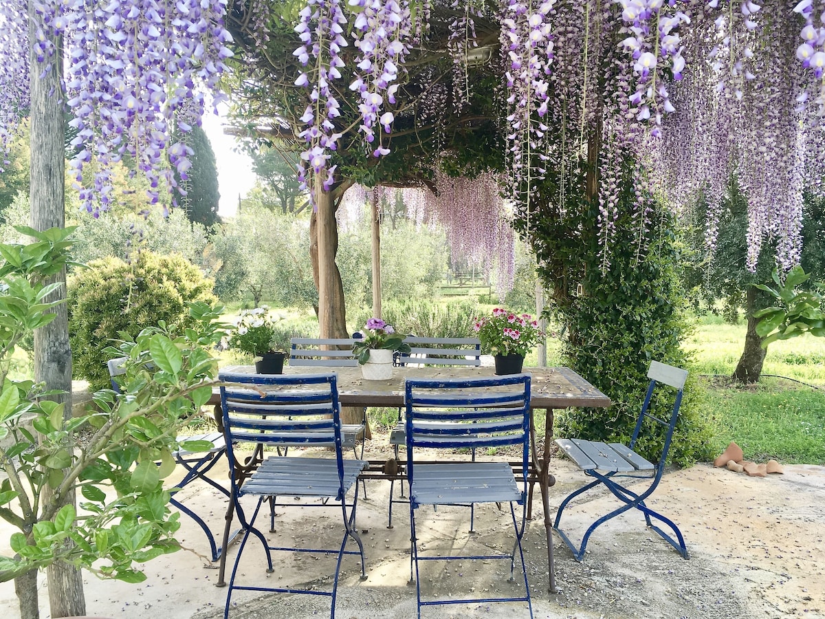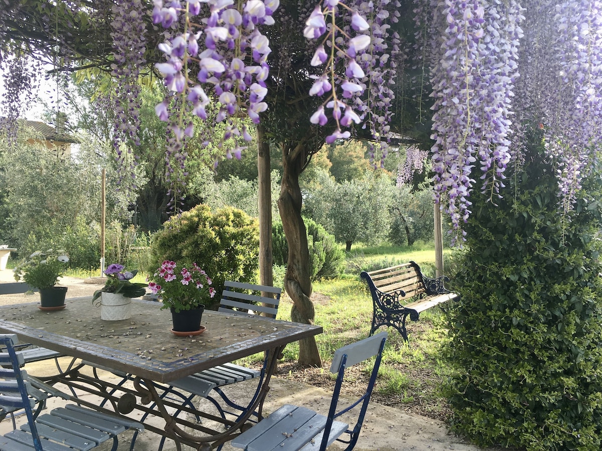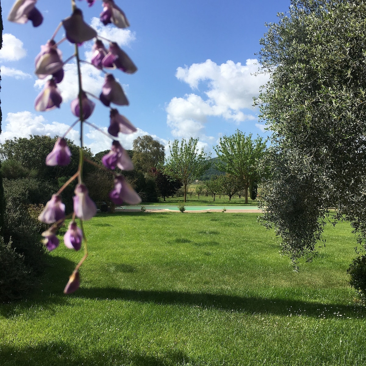 The private pool is in the big garden surrounded by Mediterranean vegetation, lavender, olive trees and vineyards.