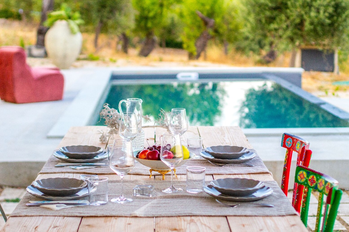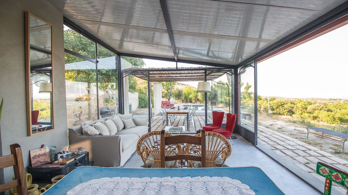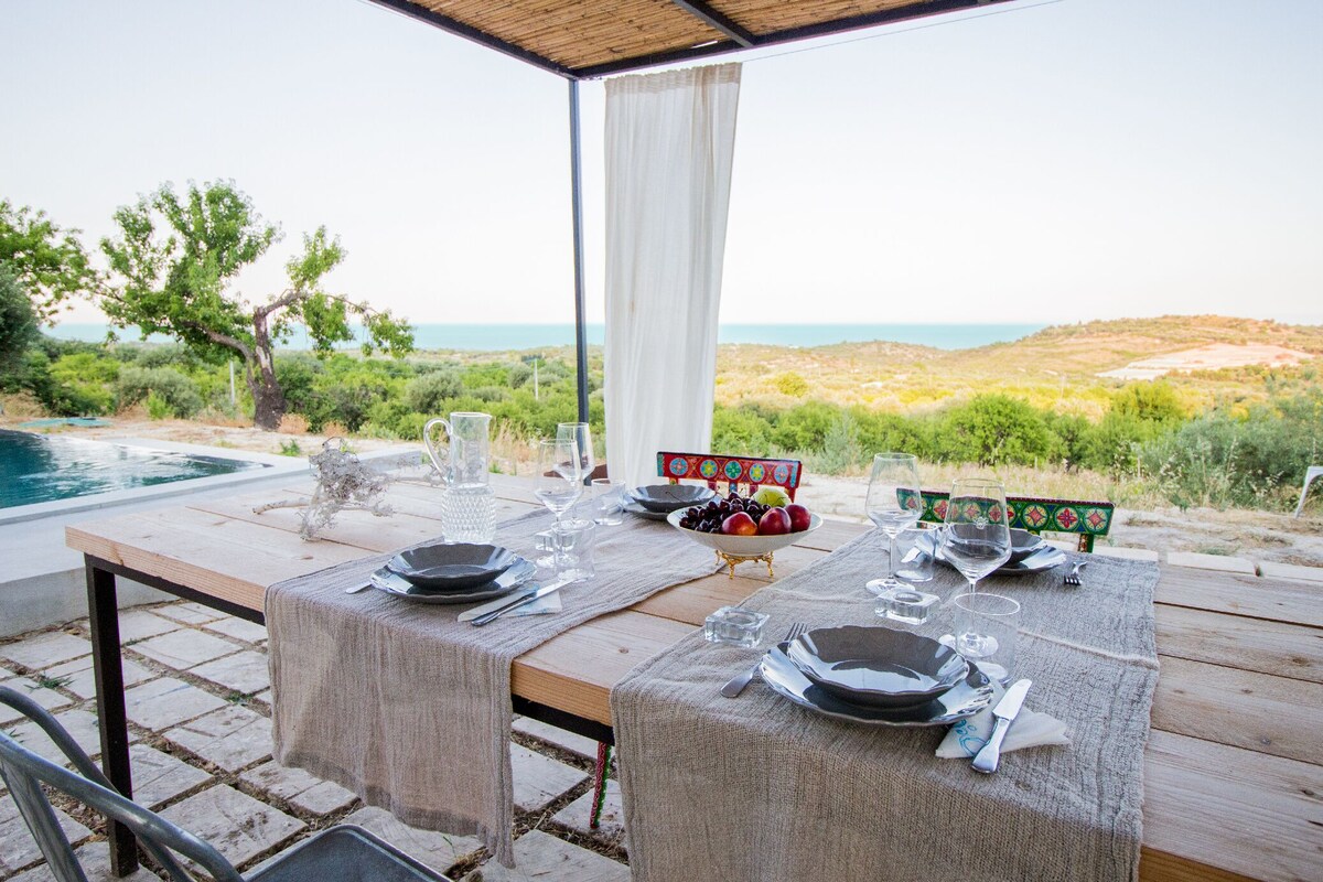 The villa consists of two comfortable bedrooms with en suite bathrooms, a fully equipped kitchen with all comforts and a splendid winter veranda with living area and dining room, also with a splendid view of the Sicilian coast. A few steps away is the swimming pool, with salt, with infinity edge and its solarium and the BBQ area.